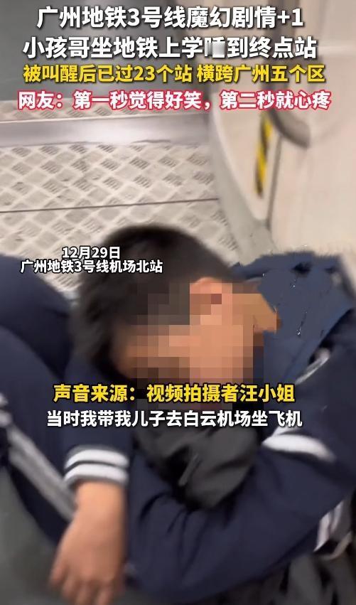 广州小孩哥坐地铁上学睡过23个站, 一觉穿越半个广州,终点站竟是机场! 29日早高峰,广州地铁3号线惊现"最强睡神"!一名小学生背着书包上车后,竟从番禺广场一路睡到了白云机场,横跨5个区23个站,上演现实版"人在囧途"! 当时市民汪女士正赶飞机,发现邻座男孩睡得歪头耷脑。列车过了体育西路站,男孩仍没醒,直到终点站机场南站,工作人员连喊三声才把他摇醒。更绝的是,男孩淡定掏出作业本:"我要去华师附中上学,怎么到机场了?" 原来这孩子坐反了方向,加上前一晚补作业到凌晨,直接开启"沉睡模式"。家长接到学校电话时正满世界找娃,赶到机场看到儿子懵圈的样子,又好气又好笑。地铁工作人员暖心安排了返程专车,还送了他一盒牛奶充饥。 网友笑疯:"这波操作连导航都跟不上!""建议地铁出个'学生防睡过站'套餐""广州地铁:这届乘客太难带了!" 你家孩子有过"离谱"的上学经历吗?评论区聊聊,点赞转发让更多人看到这出"乌龙大戏"!