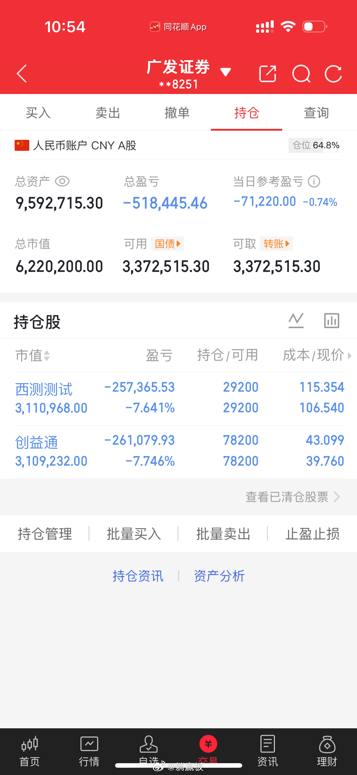 12月29日 早盘记录全职炒股900万勇闯大A记 !当日参考盈亏: 两支总盈亏-51万目前持有: 创益 西测这两天都不给力,持股过节吧机遇与挑战并存,希望能创造奇迹,更到数倍那天。特别声明:本文仅是个人观点及操作不构成投资建议,仅供参考!