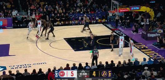 41岁的詹姆斯这个快攻太快了队友都追不上啊,在湖人和活塞的比赛中詹姆斯队友斯玛特