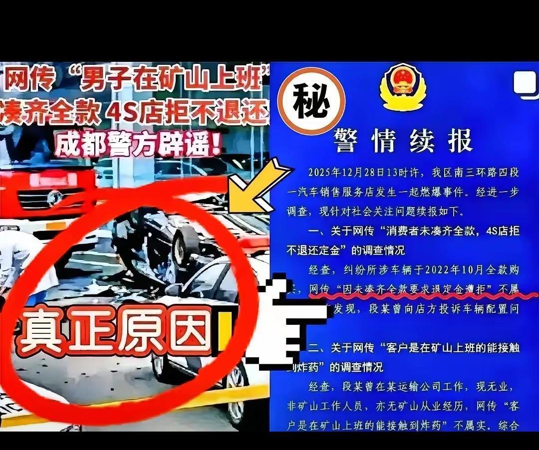 成都4S店那声巨响,炸碎的不只是门店,更是普通人对“讲道理能解决问题”的信任。 别再信那些定金纠纷的谣言,真相是54岁失业大叔全款购车后,因配置不符维权三年,跑了十多趟却被“按规定”“等通知”反复推诿。 所谓的制度流程,在他这里成了推责的挡箭牌,耗光了他的积蓄和尊严。 极端行为固然不可取,但更该反思的是:为什么理性维权的路总是走不通? 当维权成本比损失还高,当合理诉求被当成麻烦,绝望就容易钻空子。 企业的“客户第一”不该只贴在墙上,监管的维权渠道也该真正接住普通人的求助。 我们要的从不是以命相搏的结果,而是不用拼命就能被尊重的权利。 你有没有过维权被“踢皮球”的经历?最后是怎么解决的?