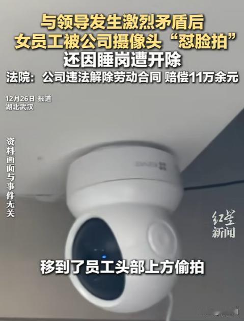 “太缺德了!”湖北武汉,一女子与领导争吵后,她的工位上就被装了个摄像头,用来专门监视她,并且将女子午休时休息的照片视频伪造成“上班睡岗”的证据,多次对女子约谈、罚款,还一直逼迫她签字离职!法院:赔偿11万余元! 女子小刘原本在武汉一家中型企业从事行政协调工作。入职三年多来,工作一直兢兢业业,绩效考核也从未垫底。转折发生在一次部门工作调整上。 那段时间,公司业务收缩,领导临时调整岗位分工,要求小刘在原有本职工作之外,额外承担大量与岗位不匹配的事务性工作,甚至包括本应由管理层完成的协调和对外沟通任务。 小刘认为安排明显失衡,多次私下沟通无果后,在部门会议上情绪激动,与领导发生了正面争执。 她直言工作安排“不合理”“明显超出职责范围”,这一番话让领导当场下不来台。争吵过后,小刘隐约感觉到,自己被“盯上了”。 没过多久,她发现工位正上方多了一个摄像头。起初她以为是公司统一安装的安防设备,可环顾四周,只有她的座位被精准覆盖,镜头正对电脑屏幕和座椅。 她向人事部门询问,对方却含糊其辞,只说是“优化管理”“提高工作效率”。 更让小刘难以接受的是,公司开始要求同事“配合管理”,暗中偷拍视频和聊天记录。有同事私下提醒她,领导在微信群里点名,让大家“注意小刘的一举一动”。 随后,她的私人聊天截图、与同事正常交流的内容,被断章取义地整理成所谓“工作时间闲聊”的证据,提交给管理层。 午休时间成了压垮她的最后一根稻草。公司规定中午可轮流休息,小刘偶尔在工位趴着闭目养神。 可这些画面被偷拍视频后,却被剪辑成“上班睡岗”的视频材料。视频中刻意模糊时间节点,去掉午休说明,反复播放给她本人和部门员工“学习警示”。 随之而来的,是一次次约谈和处罚。公司以“违反劳动纪律”为由,多次对小刘进行罚款、通报批评,要求她写检查、签字确认“违规事实”。 小刘拒绝承认伪造内容,领导便换了一种方式施压——明确表示“继续耗下去,对你没好处”,并暗示只要主动离职,公司可以“不再追究”。 长期的监控、孤立和心理压迫,让小刘身心俱疲。她开始失眠、焦虑,甚至不敢在工位上正常活动。最终,在亲友的建议下,她选择保留证据,通过法律途径维权。 案件进入法院后,真相逐步浮出水面。 法院查明,公司在未征得员工同意、也无合理管理必要的情况下,单独对小刘工位安装摄像头,已严重侵犯其隐私权和人格尊严。 要求员工偷拍、伪造证据,属于明显的违法用工行为;所谓“睡岗”“违规聊天”的证据存在剪辑、篡改,缺乏真实性。 更重要的是,公司多次以罚款、约谈、威胁方式逼迫小刘签字离职,构成违法解除劳动关系。 最终,法院依法判决公司向小刘支付违法解除劳动合同赔偿金、精神损害抚慰金等共计11万余元。 判决书中明确指出:企业管理不能以“效率”为名,行监控、打压之实;员工依法表达异议,不应成为被报复的理由。 这起案件,也为无数职场人敲响了警钟——忍让不是唯一选择,法律,始终站在正义一边。