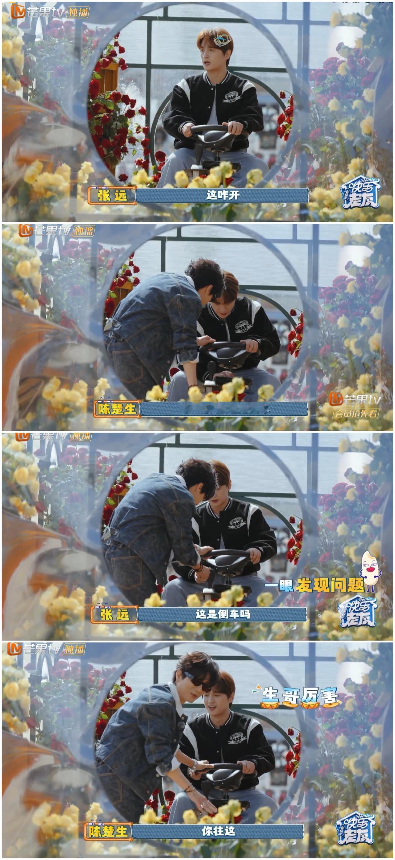 看来“厚米团”真的离不开陈楚生, 张远鼓捣半天, 愣是搞不明白, 陈楚生一出手瞬间搞定。 张远拥有一辆花房车, 他想把车开动起来, 但是他研究了半天, 一直无法开动。 陈楚生刚好路过, 见此情景, 上前帮忙。 只见陈楚生一看, 就找到问题关键, 告诉张远各个按键的作用, 于是张远在陈楚生的指导下, 瞬间把花房车开动起来。 不然花房车只能变成 静止的普通“花房”而已。 就这样张远把花房车开动起来, 陆虎,苏醒也坐上了车。 在这个充满童趣的地方畅游。 你说, 别看陈楚生在节目里 就静静坐在那里 喝茶喝咖啡, 关键时候 还得看陈楚生出手, 一下子就搞定了。 网友看到这一幕, 感叹这个“家”离了 陈楚生可不行呀。 陈楚生观察事物细心, 跟大大咧咧的张远不一样, 张远平时拿到新东西 大概率连说明书都不看的, 直接上手乱捣鼓一番, 就凭借手感吧, 不过这次“翻车”了。