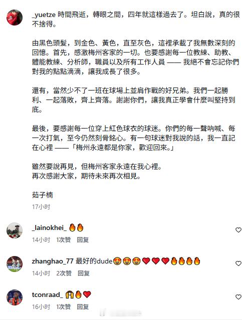 这个是茹子楠的真号,之前球迷看到的那个到处自暴下家的那个抖抖号显然不是。球员去年到今年都有谈工作,有能力被人找是很正常的现象,但他对梅州的感情也是真的。