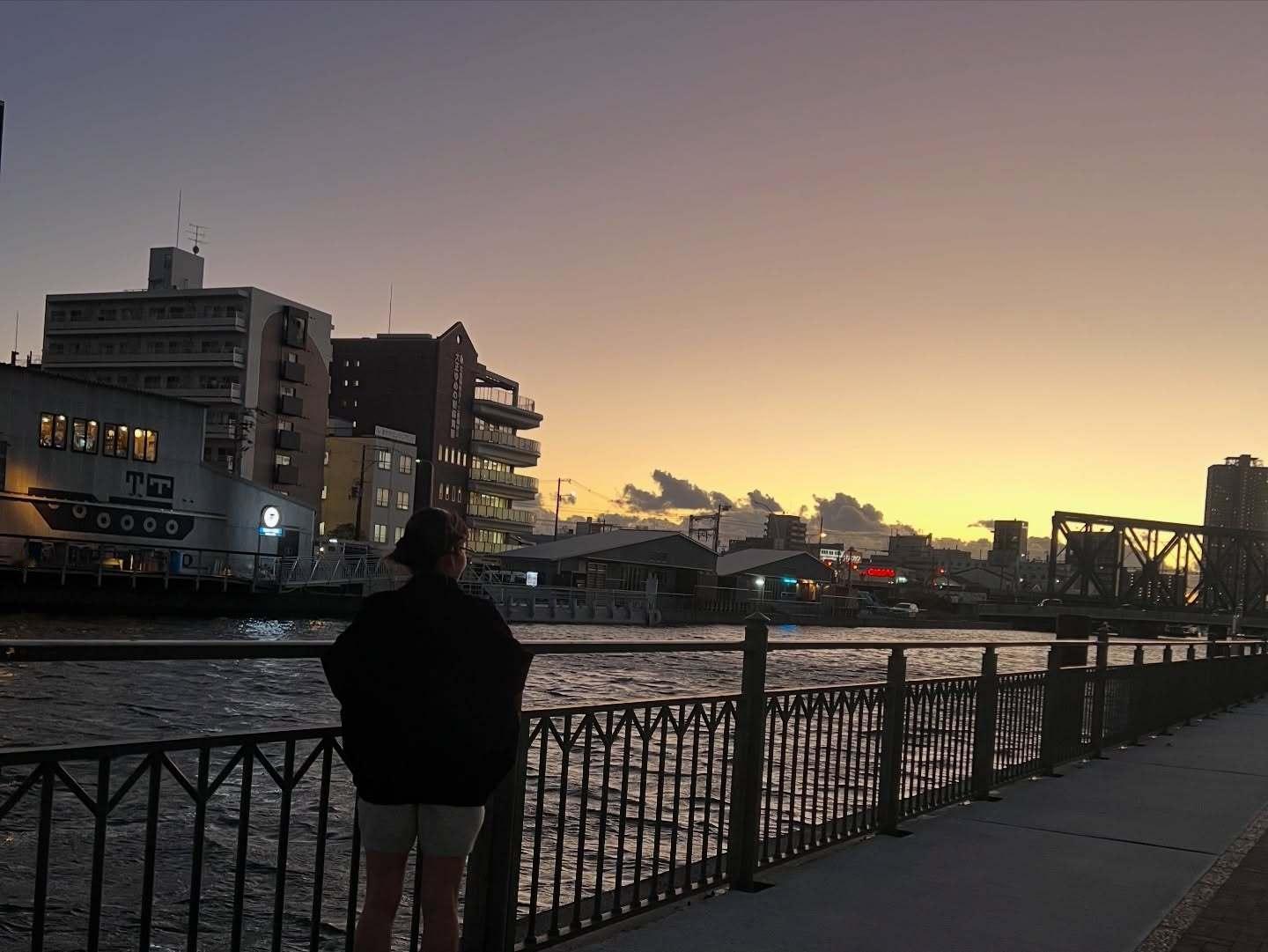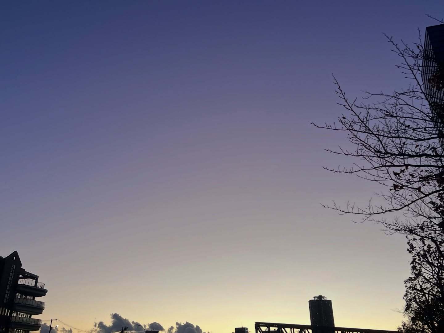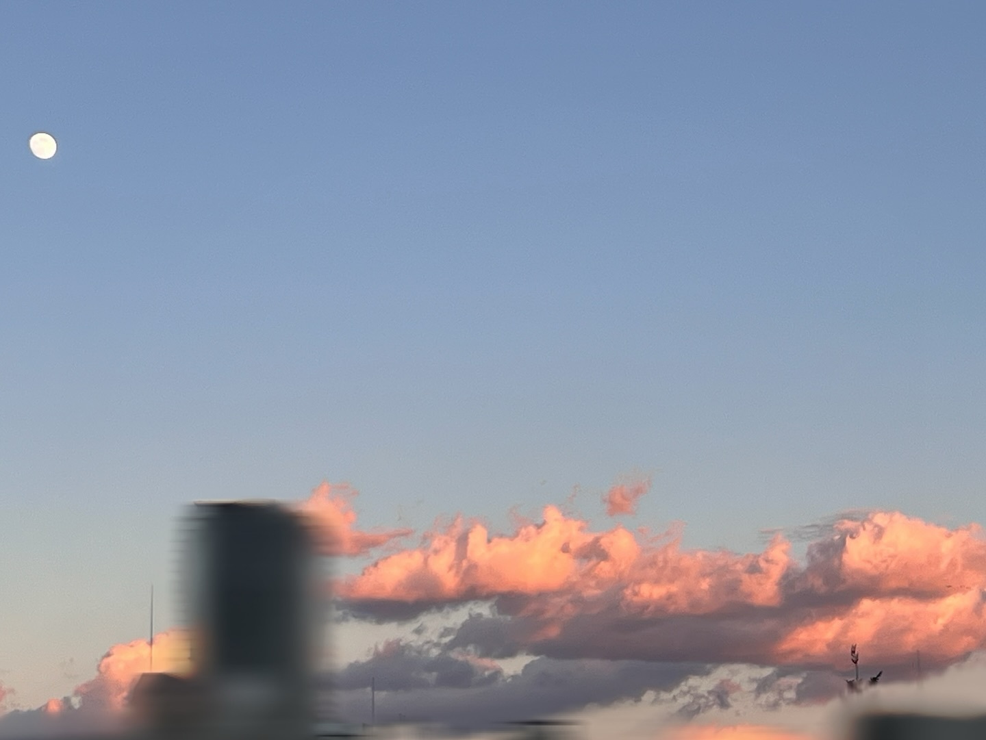 東村芽依🍓「空のグラデーションめっちゃキレイやし、友達が月撮るの上手すぎた日🌝リップの系統は真逆やった💄良いお年をです、、☁️」meigram.