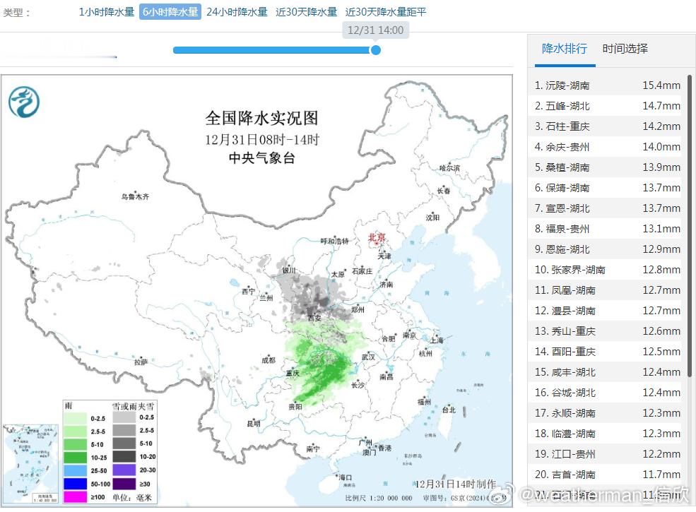 【雨雪】昨晚到今天白天,降水发展增多。图1为逐小时的降水动态,图2为今天08-14时雨雪分布。重庆贵州湖南湖北多地出现降雨,宁夏甘肃陕西山西河南湖北部分地区出现降雪。总体上还是陕西降雪最强,14时,陕西部分站点积雪达到了10厘米以上。比如宜君13厘米、彬州12厘米、长武、永寿、华州、华山都是10厘米。今天下午到明天中午,雨雪继续向东推进。河南中西部和南部、湖北北部和西部、安徽西部等地的部分地区有大雪,局地有暴雪(10~13毫米)。上述部分地区新增积雪深度3~7厘米,局地可达10-15厘米。