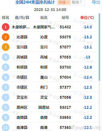 【降温】今天宁夏陕西山西河南湖北部分地区,在冷空气+雨雪影响下,气温下降10℃以上。宁夏固原降12.2℃、陕西志丹降12.1℃、山西沁源降13.2℃、河南栾川降13.1℃、湖北荆门降12.3℃,为各自省区14时降温最强站点。而且多地气温呈现倒降走势,下午比凌晨和昨晚还低。