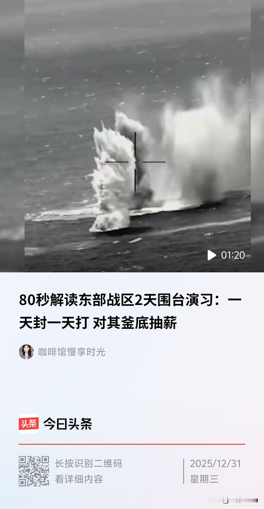 东部战区“正义使命 - 2025”联合围台演习于2025年12月29 - 30日采用“一天封一天打”模式,展现强大实力,释放关键信号。具体情况如下: 一天封(12月29日) 以全域封控为核心,多军兵种协同在台湾海峡、台岛周边海域构建五面合围,实现立体孤困,封控抵近台岛“12海里线”。海上,驱护舰编队切断台岛与太平洋联系,潜艇水下封锁,核心港口被火力遮断;空中,战机编队建立禁飞区,切断空中通道。此次封控纳入民用交通管制和海警执法,一旦启动非和平方式,台岛物资运输、航班将瘫痪。同时,巴士海峡被封控,构建外线慑阻防线,拒止外部干涉。 一天打(12月30日) 进入全域实弹打击阶段,以“封控强化 + 精准惩戒”为核心。上午,空军战机对台岛军事据点、指挥中心模拟精确打击,陆军远箱火分队覆盖台岛北部、西南外海靶区,切断民进党当局能源运输线。远箱火射程覆盖台岛全域,火箭军对台军舰船、陆上目标模拟火力突击。下午,两栖攻击舰编队开展登岛作战演练,海空兵力进行查证识别等演练,还针对性开展“台独”首恶模拟斩首。 此次演习绝非简单战术安排,是实战化能力检验和统一战略宣示,对“台独”势力、美国及国际社会释放明确信号,彰显中国人民解放军捍卫国家主权和领土完整、挫败分裂图谋、推动台海统一的决心和能力。