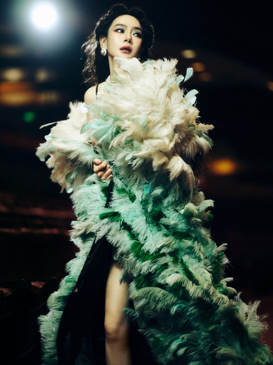 戚薇珍珠项链叠戴 羽毛披风是梦境,黑色吊带是现实,而叠戴的珍珠项链,是戚薇连接两者的诗意桥梁。这份搭配的巧思,不仅在于单品的华丽,更在于她总能将截然不同的元素,融合成独属于自己的统一美学。