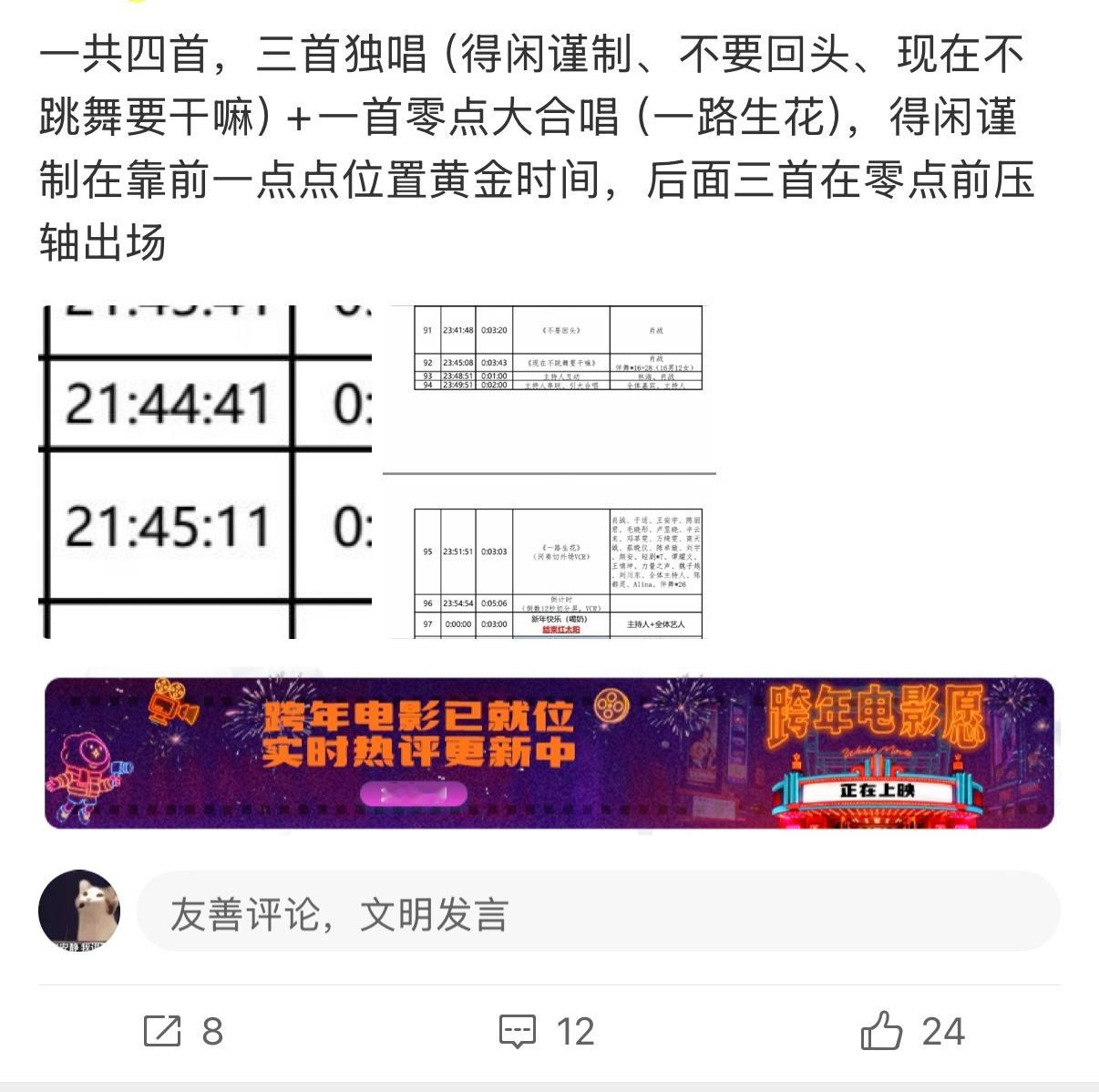 东方卫视跨年全阵容名单啊啊啊啊啊啊啊肖战东方卫视跨年居然有4首啊啊啊啊啊啊!!!三首独唱《得闲谨制》《不要回头》《现在不跳舞要干嘛》,零点大合唱《一路生花》,《得闲谨制》在黄金时段还有伴舞,其他三首在零点前压轴!!!! 肖战把角色名藏在新年祝福里 肖战唱现在不跳舞要干嘛