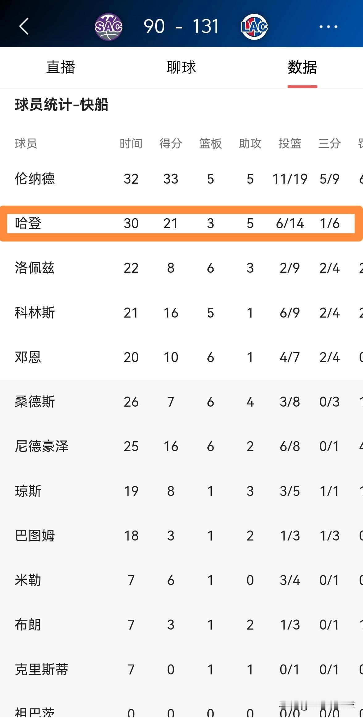 快船官方真是太宠爱老将哈登了!在今天快船主场以131:90大胜国王的赛后,快船官方更新社媒晒出了一张赢球海报,本场比赛得到21分3篮板5助攻的哈登成为了赢球海报的封面人物。 老实说,本场比赛伦纳德的表现要强于哈登,但是快船官方依然选择哈登成为赢球海报的封面人物,这充分说明快船对哈登的宠爱。