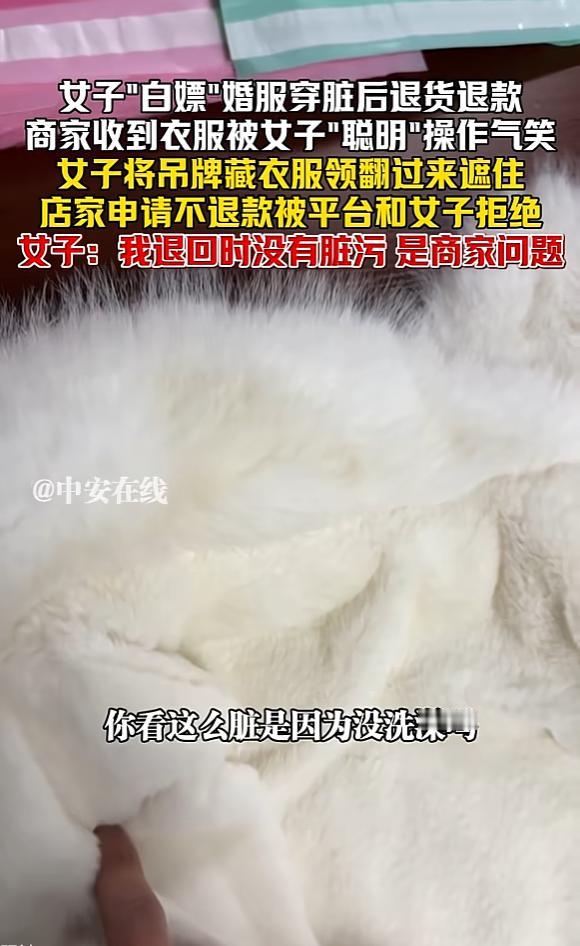 “活不起了!”,近日,安徽,一女子网购了件婚服,婚礼结束后便申请退货退款,商家收到后,发现女子用别针将吊牌藏在了看不见的地方,而且衣服上还有明显污渍,最后商家气不过,申请不退款,结果被平台和女子拒绝。网友:太丢人了! 商家此时的心情大概是从困惑骤降至愤怒的冰点。映入眼帘的那件婚服,咋一看似乎挑不出大毛病,原本悬挂的吊牌并没有被剪断,依然“完好”地连在衣服上。按照电商那套冷冰冰的规则,这就意味着商品并未投入使用,符合“七天无理由”的退换铁律。 当手指翻过厚实的毛领,那个藏在夹层里的秘密让所有说辞都显得苍白一枚原本不该属于这件高档衣物的小别针,正死死地扣住反折过来的吊牌,像是一记无声的耳光,狠狠扇在“诚信”二字脸上。 这哪是什么“试穿不合适”,分明是一场蓄谋已久的“完美白嫖”。如果仅仅是那枚别针,或许还能狡辩成“试穿时的临时固定”,但衣服内里那片早已渗入纤维的汗渍和不知名的污垢,赤裸裸地宣告着这件衣服经历了怎样喧闹的一天。 那不是试穿能留下的痕迹,那是婚宴上的推杯换盏、是长时间贴身穿戴后身体留下的诚实记录。但这枚作为关键物证的别针,甚至在退货打包的那一刻都被它的“主人”遗忘了,又或者是在她看来,这点小把戏足以骗过所有人,连销毁证据都懒得动手。 时间倒回几天前,安徽的一位准新娘正对着屏幕精打细算。结婚是人生大事,不仅要有排场,还要在这场只持续一天的“秀”里哪怕抠出一分钱的利润。她相中了这款价值不菲的婚服,到手试穿后效果惊艳。这时候,心里的算盘珠子响了:既然只穿一次,为什么非要花几千块买下来?为什么不能利用平台赋予消费者的“后悔权”来实现自己的“风光梦”? 这种算计并非一时冲动,而是经过了精密的“技术处理”。她不仅要把衣服穿出去,还得想办法绕过那个“剪吊牌不退”的死规矩。于是,这枚看似不起眼的别针登场了。她并没有剪断挂绳,而是极具“巧思”地将吊牌向上翻折,小心翼翼地利用毛领的遮挡特性,将吊牌固定在谁也看不见的死角。 这样一来,外表看去这就是一件光鲜亮丽的全新婚服,足以支撑她在婚礼聚光灯下的体面;而只要挂绳没断,这就是她手中的“免死金牌”。 这场戏演到婚礼结束还不算完,真正让人跌破眼镜的是之后的“罗生门”。当商家收到这件带着汗臭味、甚至已经无法通过清洗复原的“废品”时,愤怒地拒绝了仅退款申请。毕竟,纤维里的污渍已经造成了不可逆的实质性损坏,这根本不可能再进行二次销售。对于任何一个本分做生意的人来说,这不仅是经济上的亏损,更是人格上的羞辱。 然而,规则有时候是滞后的,甚至是盲目的。当官司打到了平台仲裁这一步,这名女子的心理素质简直强大到令人咋舌。面对商家摆出的证据,那枚可笑的别针和满是污渍的内衬,她非但没有半点愧色,反而倒打一耙。她一口咬定这些脏污是衣服寄来时“本来就有”的,拒不承认自己曾经穿过这件婚服出席婚礼。 这种无赖般的辩解,硬生生利用了网购无法“面对面验货”的时间差漏洞。令人窒息的结果在12月26日被媒体曝光了出来。尽管商家的愤怒隔着屏幕都能溢出来,但在僵化的判定标准面前,他们还是输了。 平台的审核机制无法像侦探一样去复原那枚别针是什么时候被别上去的,也无法透过照片判断那片污渍究竟形成于哪一个小时。哪怕那枚别针就像是一个只要长了眼睛就能看懂的讽刺符号,但在判定逻辑里,只要那根脆弱的塑料挂绳没有断裂,只要无法百分百从技术上证明污渍是买家造成的,天平就会机械地向“消费者权益”倾斜。 商家的诉求被驳回,不得不硬着头皮退了全款,不仅赔了衣服还得受气,只能“打落牙齿和血吞”。这不仅仅是一单生意的损失,更是对商业互信体系的一次爆破。那种“我凭本事钻空子,你能拿我怎样”的傲慢,成了这次事件最刺眼的注脚。 这种把聪明劲全用在坑蒙拐骗上的行为,早已超出了“爱占小便宜”的范畴。那枚别针,别住的不仅仅是吊牌,更是把做人的体面和良知全都缝死在了那层见不得光的夹层里。婚礼本该是两个人缔结神圣契约的开始,象征着忠诚与责任,可这位新娘却穿着一件靠欺诈得来的华服完成了宣誓,不知道当她日后回忆起那一刻的高光时,会不会嗅到那件衣服上残留的一丝名为“丢人”的气味。 网友们的愤怒并非多管闲事,而是出于一种对未来的深深担忧。当个体的恶意失信得不到惩罚,甚至还能被规则“保护”而全身而退时,最终买单的其实是每一个遵纪守法的普通人。 这枚小小的别针,如果不被狠狠拔掉,终有一天会刺痛我们每一个人的生活,让社会信任的成本高到让人难以承受。规则的漏洞或许暂时堵不住,但人心的漏洞一旦被贪婪撑开,就真的再也缝不上了。 信息来源:《女子"白嫖"婚服穿脏后 退货退款商家 收到衣服被女子"聪明"操作气笑 女子将吊牌藏衣服领翻过来遮住 店家申请不退款被平台和女子拒绝 女子: 我退回时没有脏污 是商家问题》中安在线