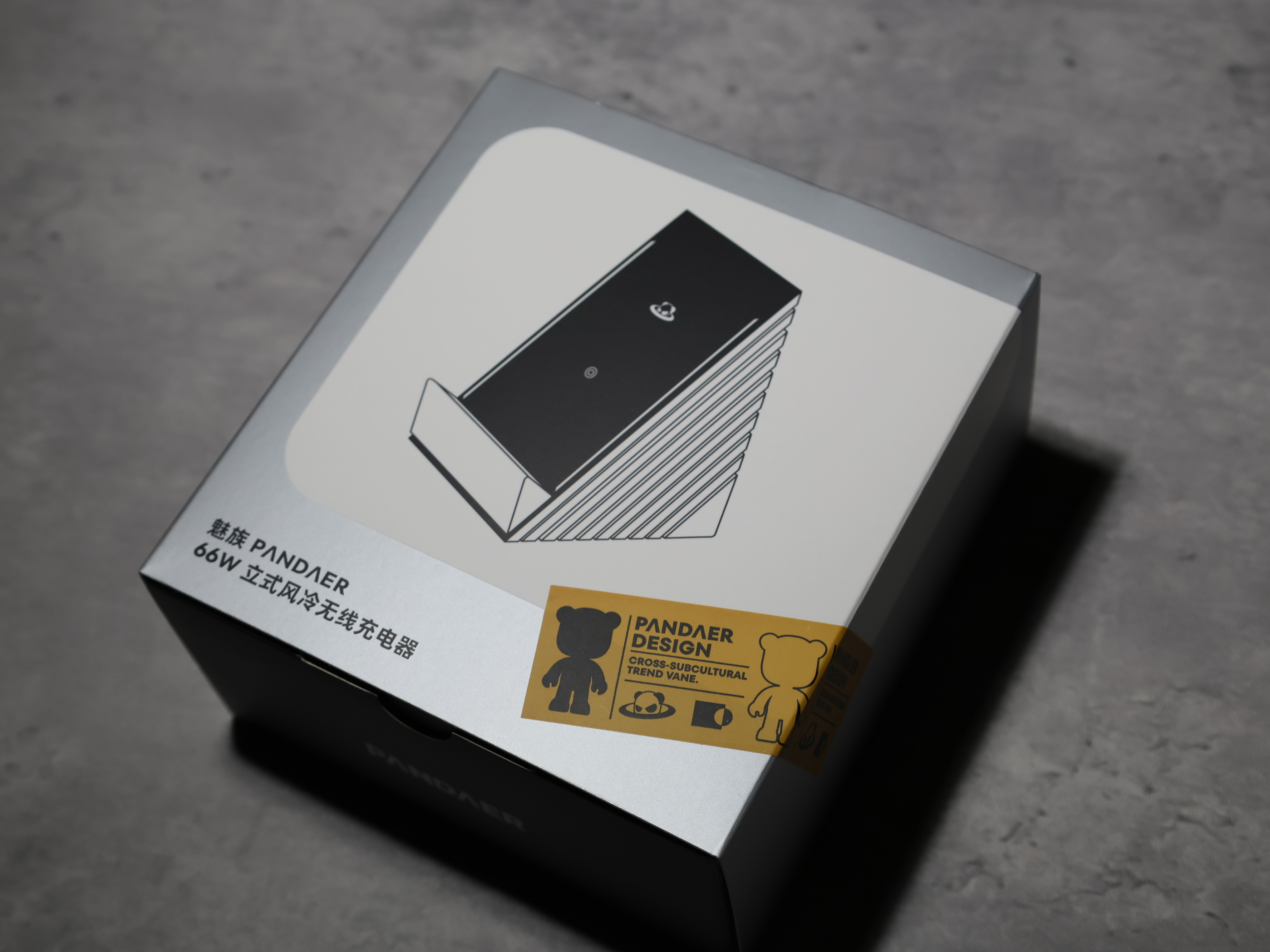大家还记得魅族PΛNDΛER黑色那个无线充不? 出白色啦!大家看看好不好看,全名:PΛNDΛER 66W 光之风冷无线 潮充,不得不说白色确实好看。功率是66W,前面有充电的指示灯,然后地下有风冷口,直接对着手机吹,可以有效控制温度,下面的灯也可以关,在后面敲一下就好。怎么样这款白色的无线充电器?好看不?