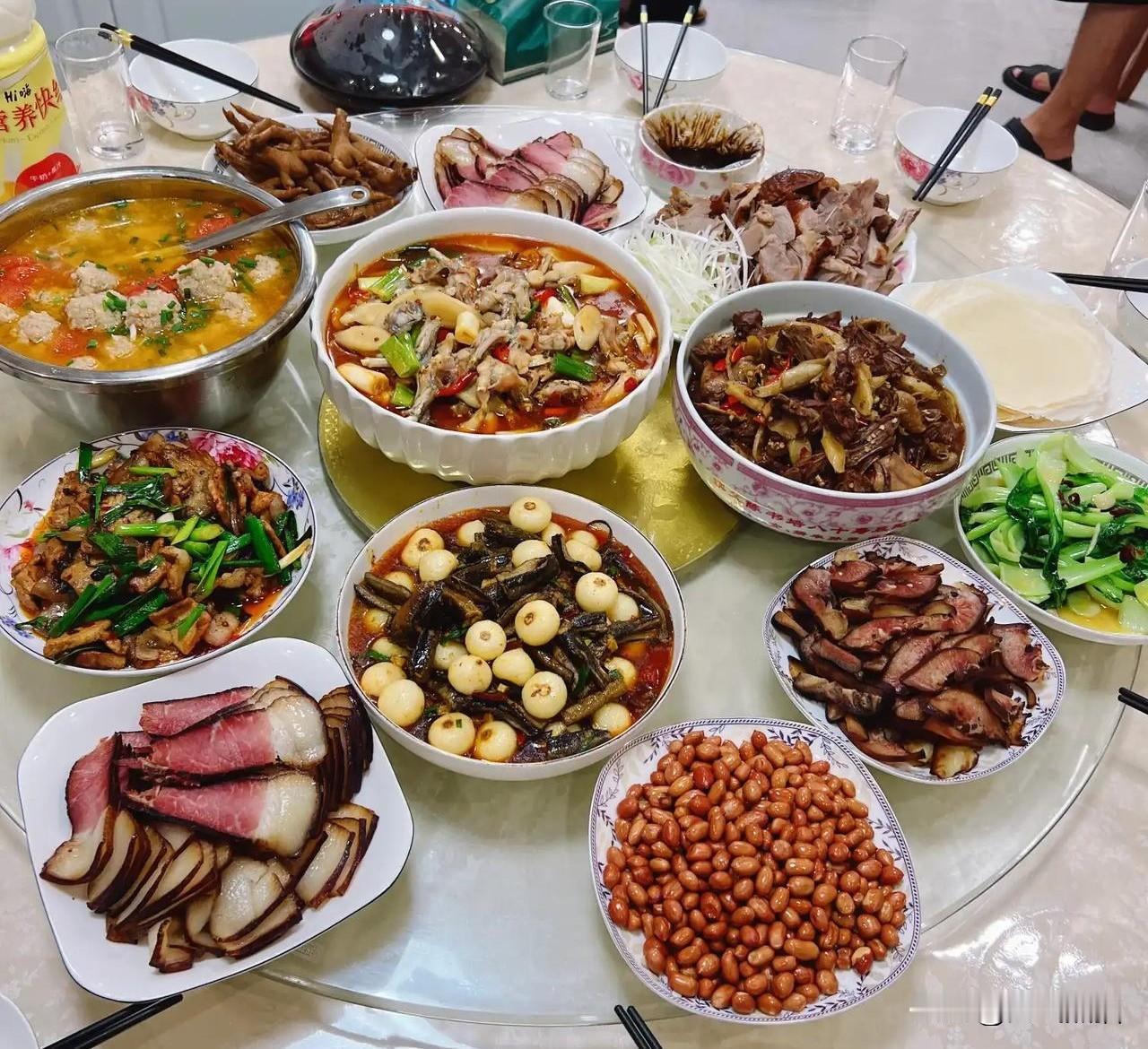 这是哪个地方的宴席?估计没有几个人能够看出来。 依我看,应该是南方的某个省份。 首先桌子上没有白酒和啤酒,只有红酒和营养快线,就这一项就能确定这是南方地区。 其次,桌子上有三四盘腊肉,感觉应该是云贵川一带的,大家认为对不对呢?