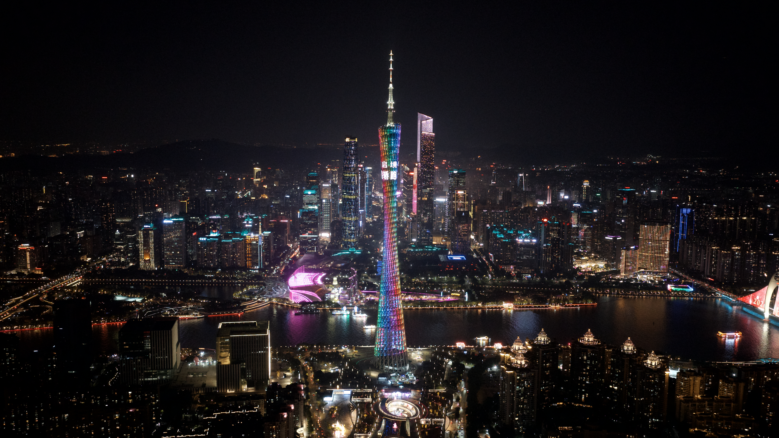 广州塔夜空闪现启境新车造型广州的跨年仪式感藏在这场表演里现在的跨年都这么有科技感