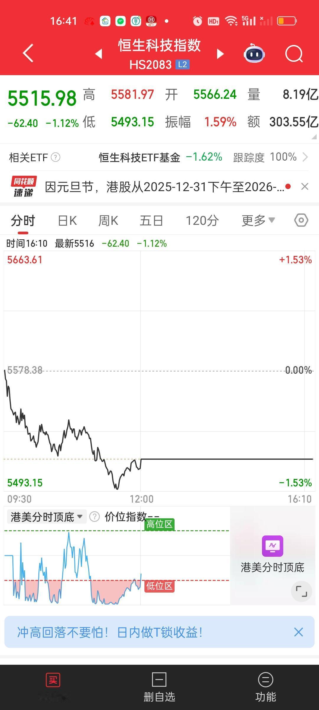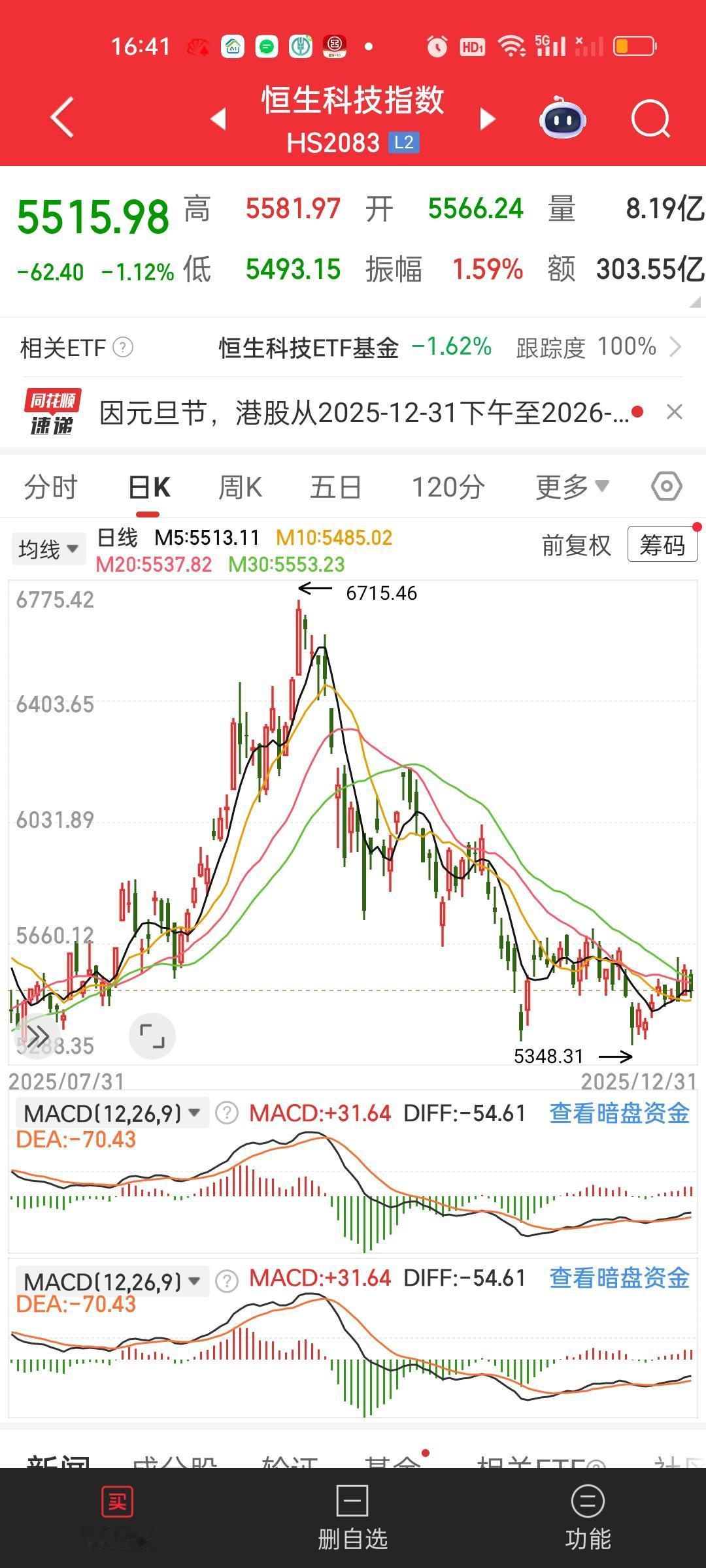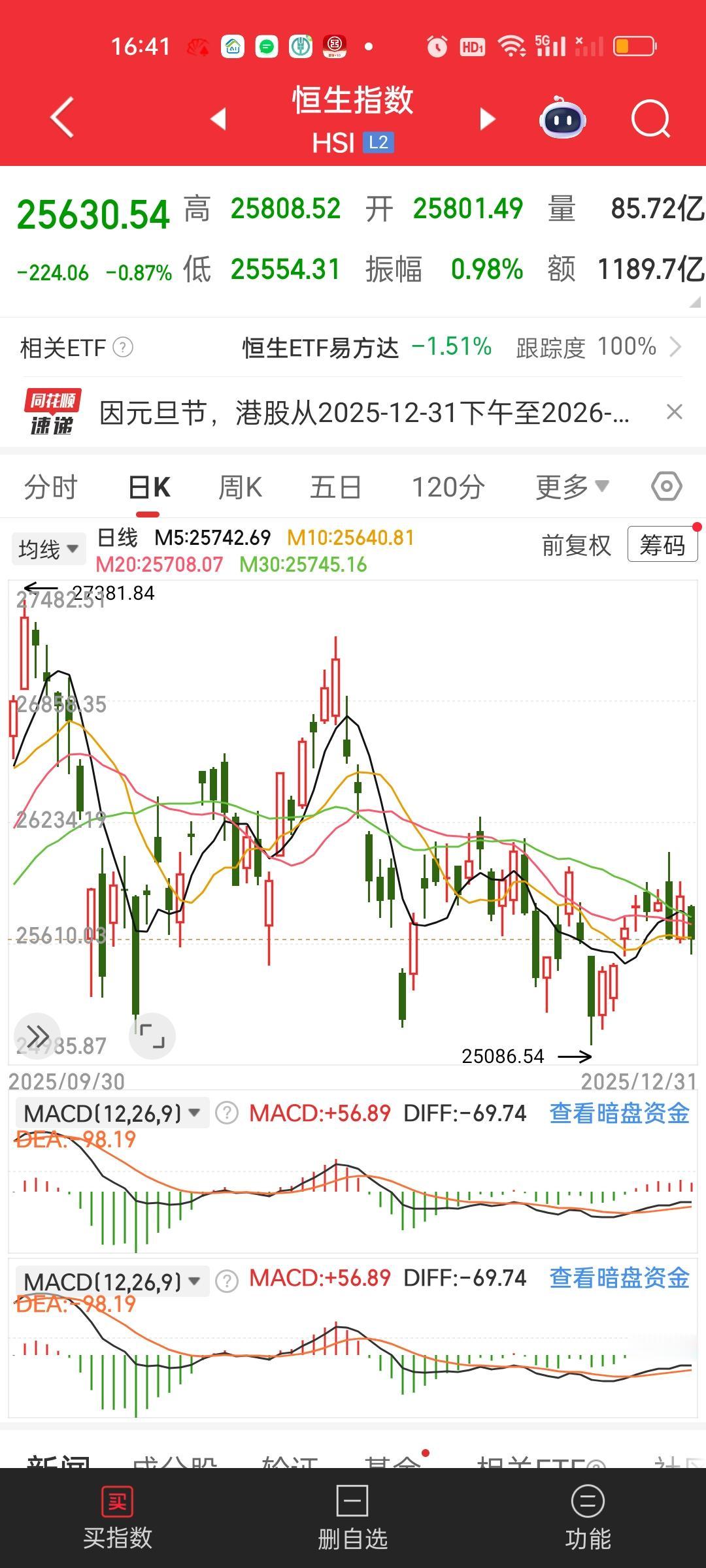港股今天下午和明天全天休市,1月2日周五正常开市,今天只开了半天盘,但盘面走的并