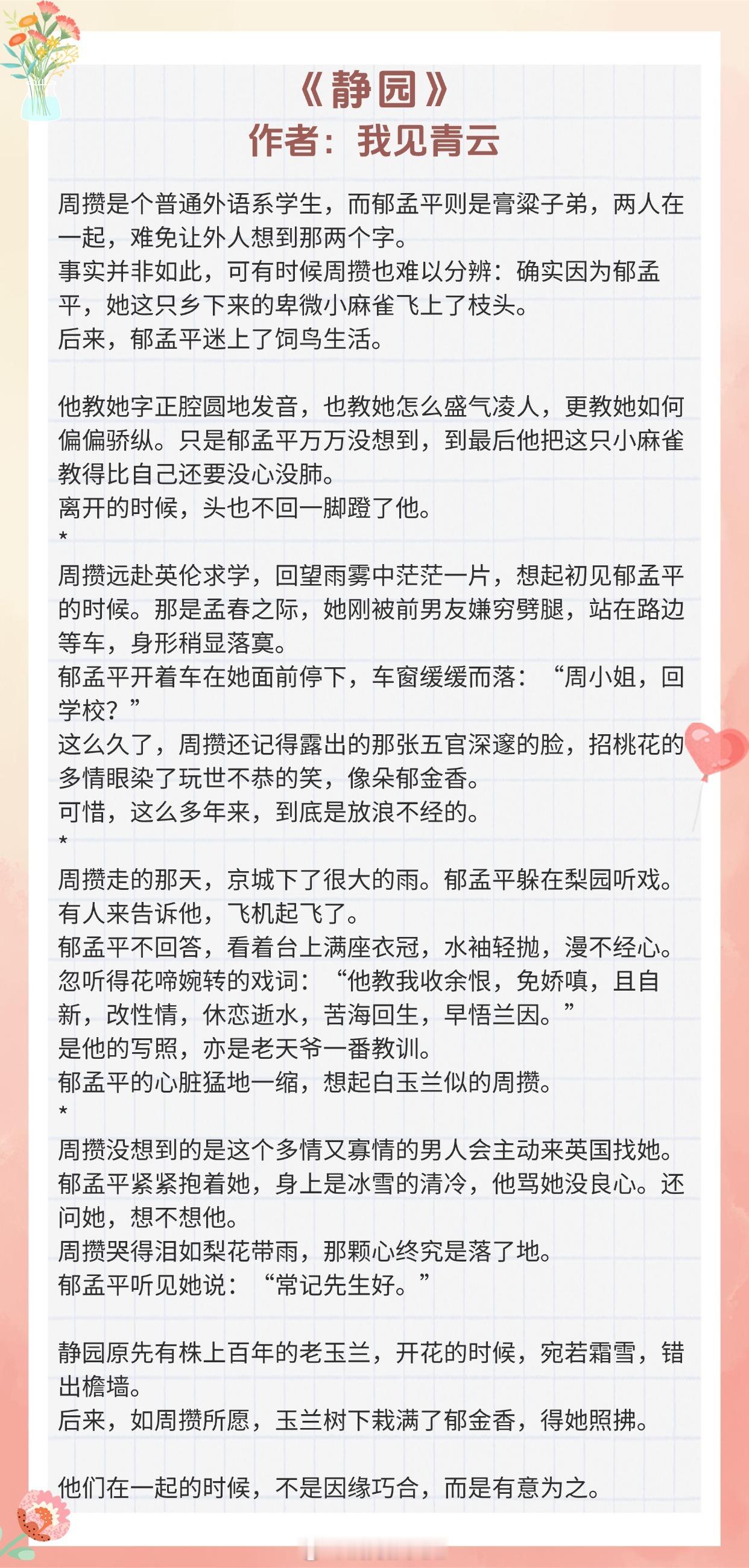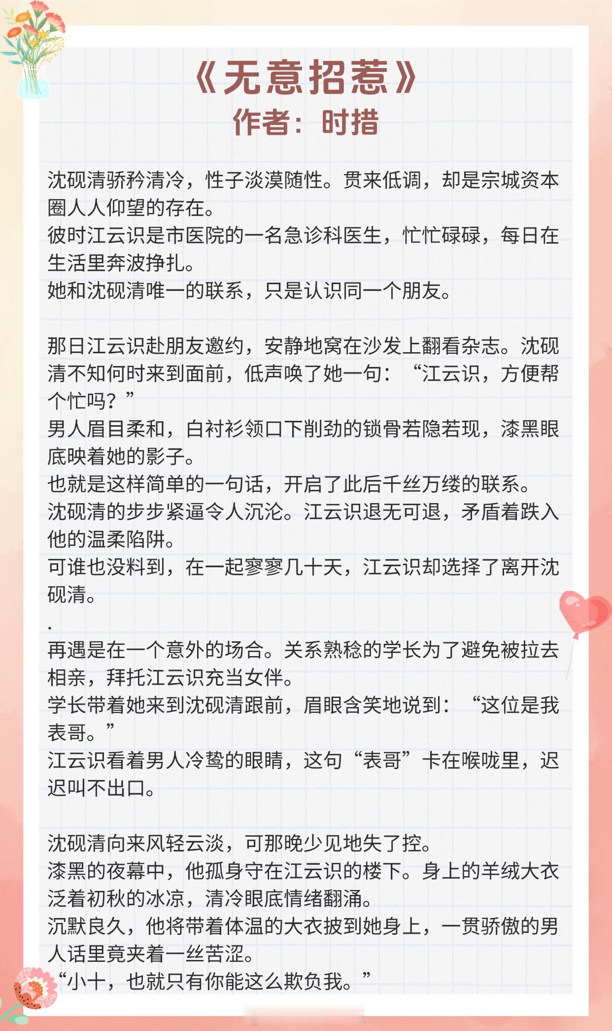【年龄差现言】他静默的渊,是她此生共白头的雪。《雾里青》作者:明开夜合《清晨心动》作者:孟五月《相亲对象他长得很凶》作者:笑佳人《晴时雨》作者:陆听橘《无意招惹》作者:时措《糖》作者:多梨《我和你差之微毫的世界》作者:北倾《静园》作者:我见青云《还债》作者:耳元推文言情小说推荐推文