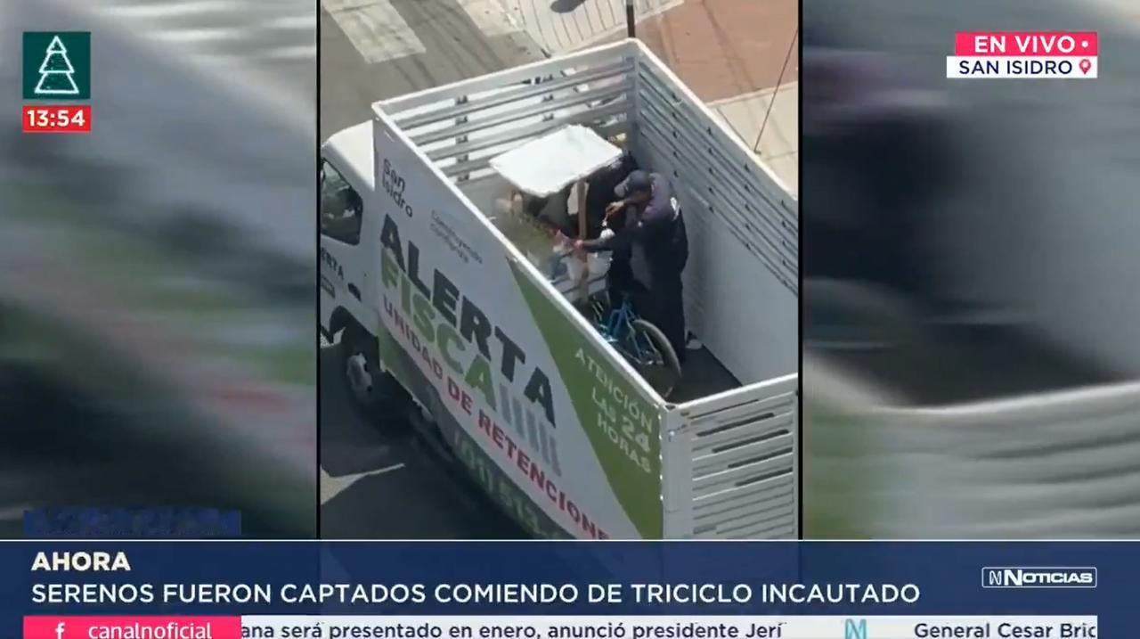 秘鲁2025年12月29日的电视新闻片段,视频显示圣伊西德罗区的检查员将一名街头小贩的酸橘汁腌鱼三轮车装上卡车,并在车内享用了部分食物。 并引发了要求追究责任的呼声。 圣伊西德罗市政府立即暂停了涉事检查员的职务,因为该行为违反了相关规定,即没收的物品必须作为证据保存,而不能食用。 秘鲁媒体的法律分析表明,该小贩保留了对三轮车和食物的所有权,这可能使其有权提出损害赔偿诉讼。