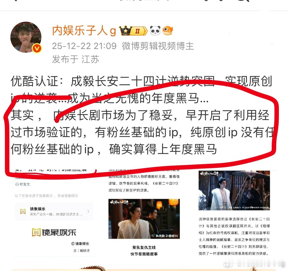 我一直说这是原创ip 原创ip在成毅的号召力下能做到优酷招商年冠 在业内眼里 这是多牛逼的事你们可能都不知道