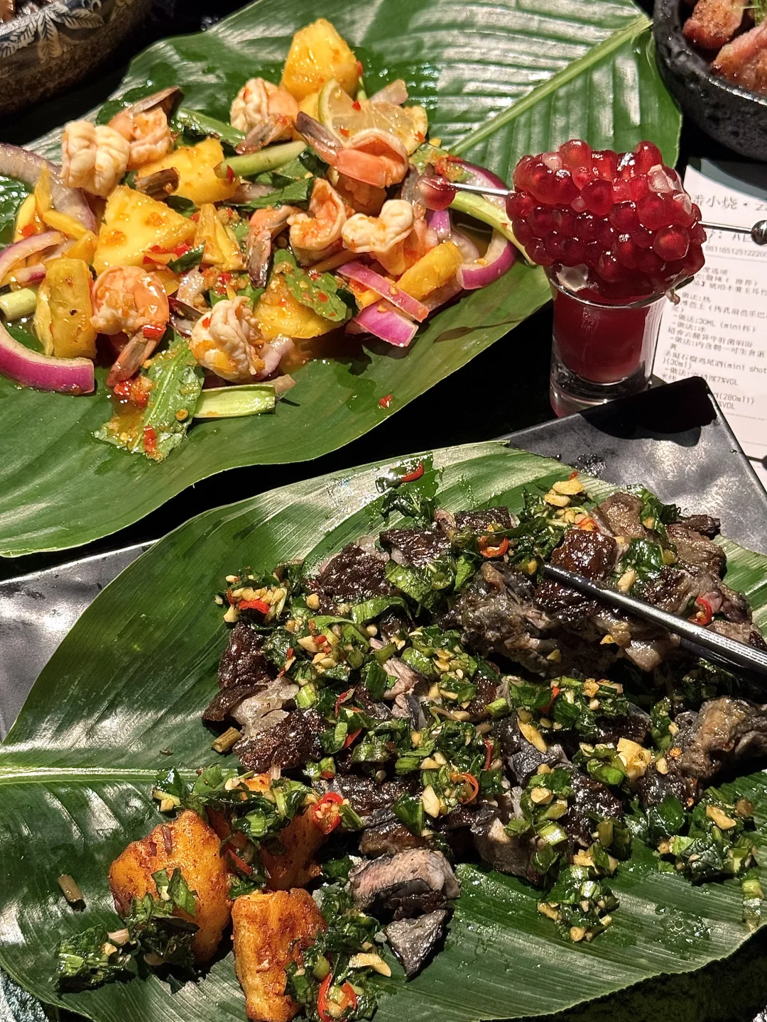 烤大虾!烤乌鸡腿!烤卤鸡脚!…还得跟着上海本地人吃🙏我心中的宝藏店+1!叫:潘小烧) 巨巨好吃的云南烧烤!师傅现点现烤,肉串每口都在爆汁嘎嘎香~百香果酸辣米线、酸笋肥肠牛肉锅、云腿笋牛肝菌焖饭…一定会是我再去n刷的小店!