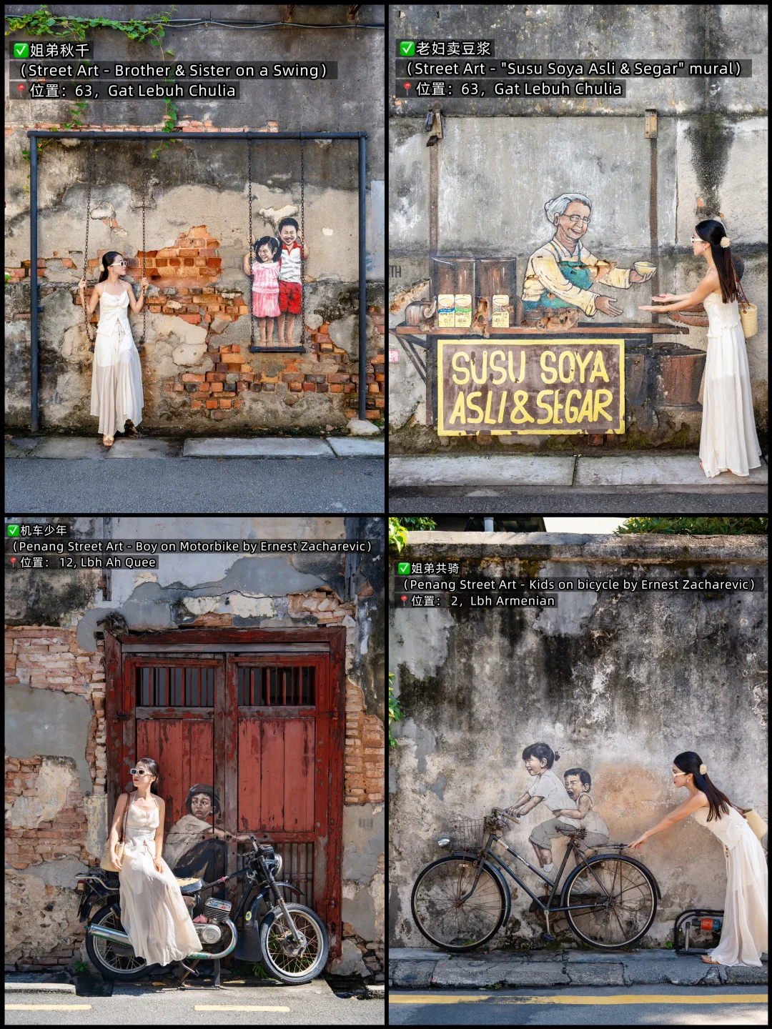 ✅槟城街头艺术街区:打卡槟城街头艺术,满街的壁画可拍照互动。经典位置我放图片里了