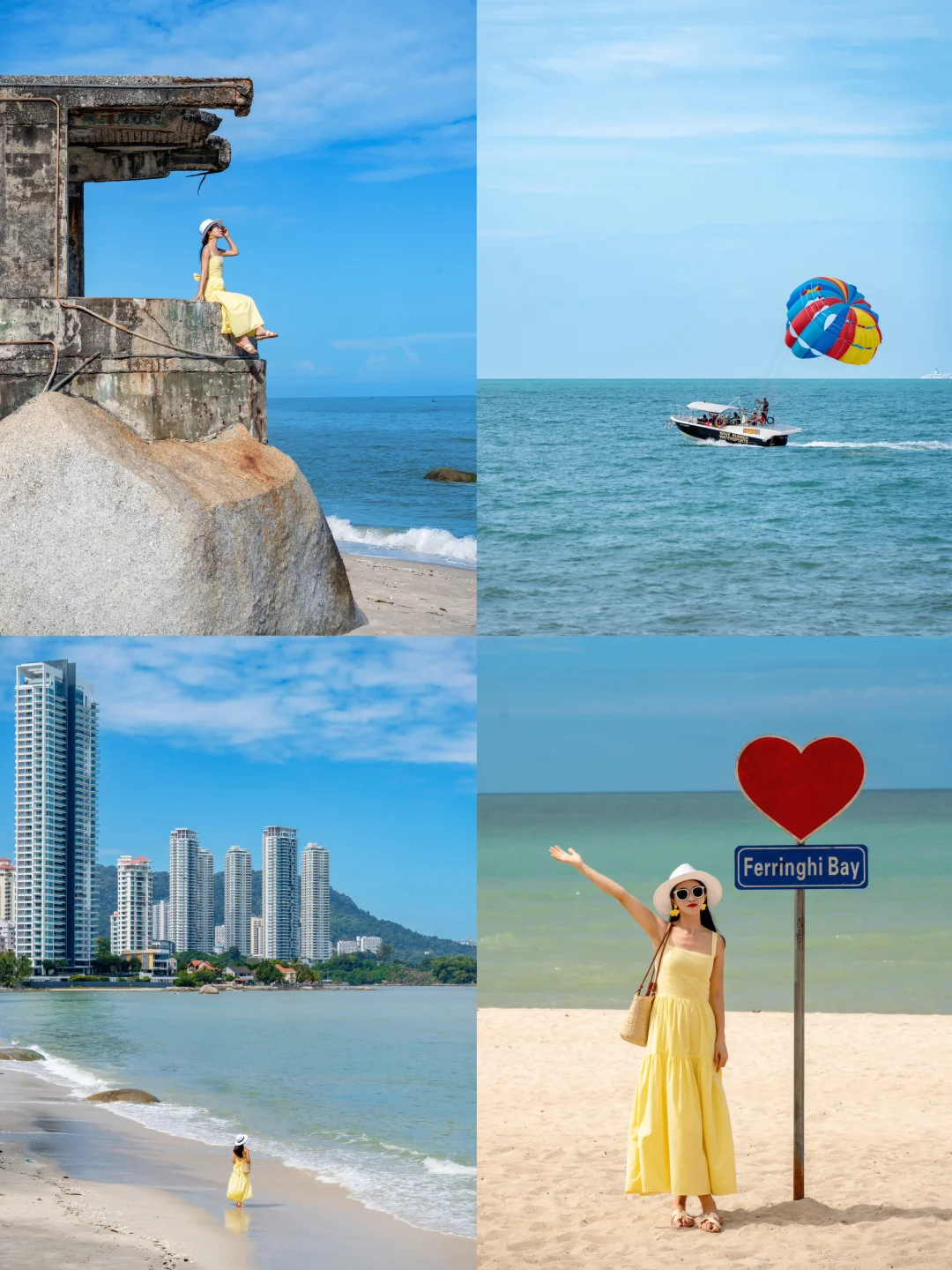 ✅Pantai Batu Feringghi:槟城人气最高的沙滩,从市区可以搭101 公交车直达。整条沙滩上都有阳伞和躺椅,很适合P人在这呆一下午,天气好的话可以看到日落,晚上还有沙滩火焰表演