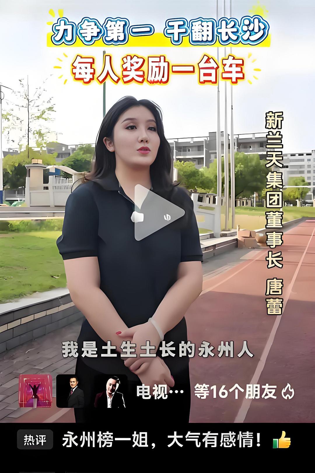 送还是不送,这真是个哈姆雷特式的难题。之前永州新兰天集团的美女老板唐总放出豪言,只要永州队在湘超决赛夺冠,就送每人一台车。现在永州队夺冠了,大家都眼巴巴看着唐总,指望着她兑现承诺,然而唐总却隐身了。 唐总是土生土长的永州人,长相漂亮,身材又好,很有风韵。她对家乡球队是发自内心的热爱与支持,永州队刚开始参加比赛时,谁也不知道这个草根球队到底能走多远,不被人看好,没有人赞助。 这个时候永州队还没名气,唐总却率先赞助了球队十万元。这是真正的雪中送炭,就像及时雨一样,所以永州队所有人都很感激她。不得不说唐总还是很有情义的,这么大手笔却没想着能有多少回报。 随着永州队一路过关斩将,关注的人越来越多,夺冠呼声增高,流量剧增。唐总当面说夺冠即送车,让所有人心花怒放,估计永州队的小伙子们着实被激励了一把,后来夺冠应该有唐总的一点功劳。 现在唐总迟迟不出来发奖,永州队孙教练还是很大度,没有揪着这事不放。毕竟送与不送都是唐总说了算,球队展望的是明年继续保持势头。 网上公开资料显示永州新兰天集团是一家汽车贸易公司,虽然车企实力雄厚,但真的要每人送一台车,也许换成谁都要掂量一下。