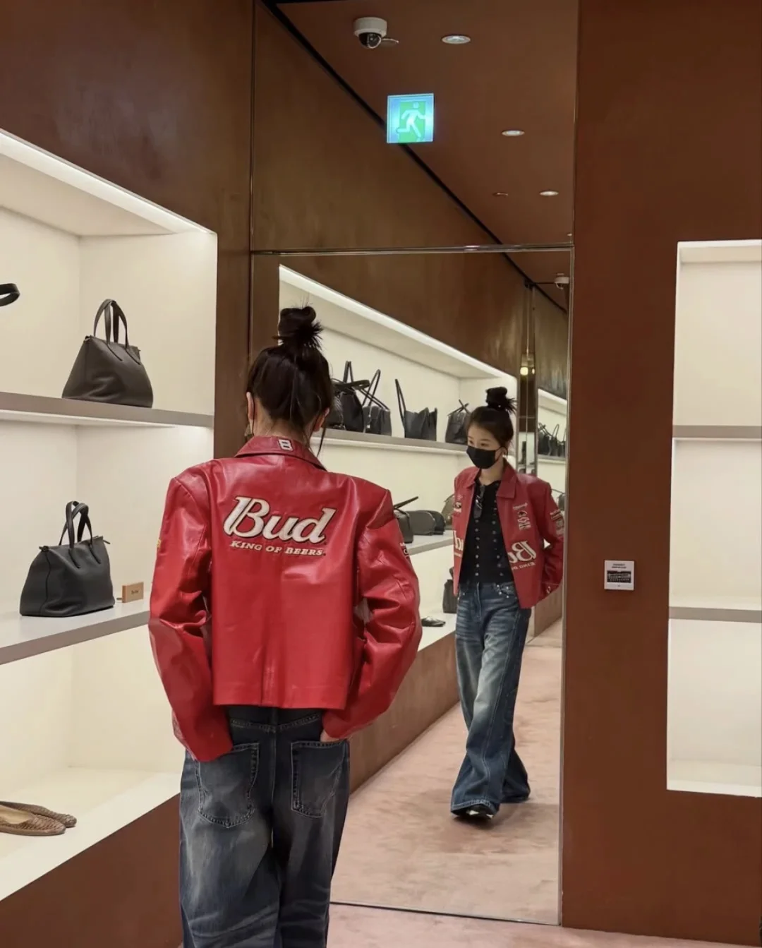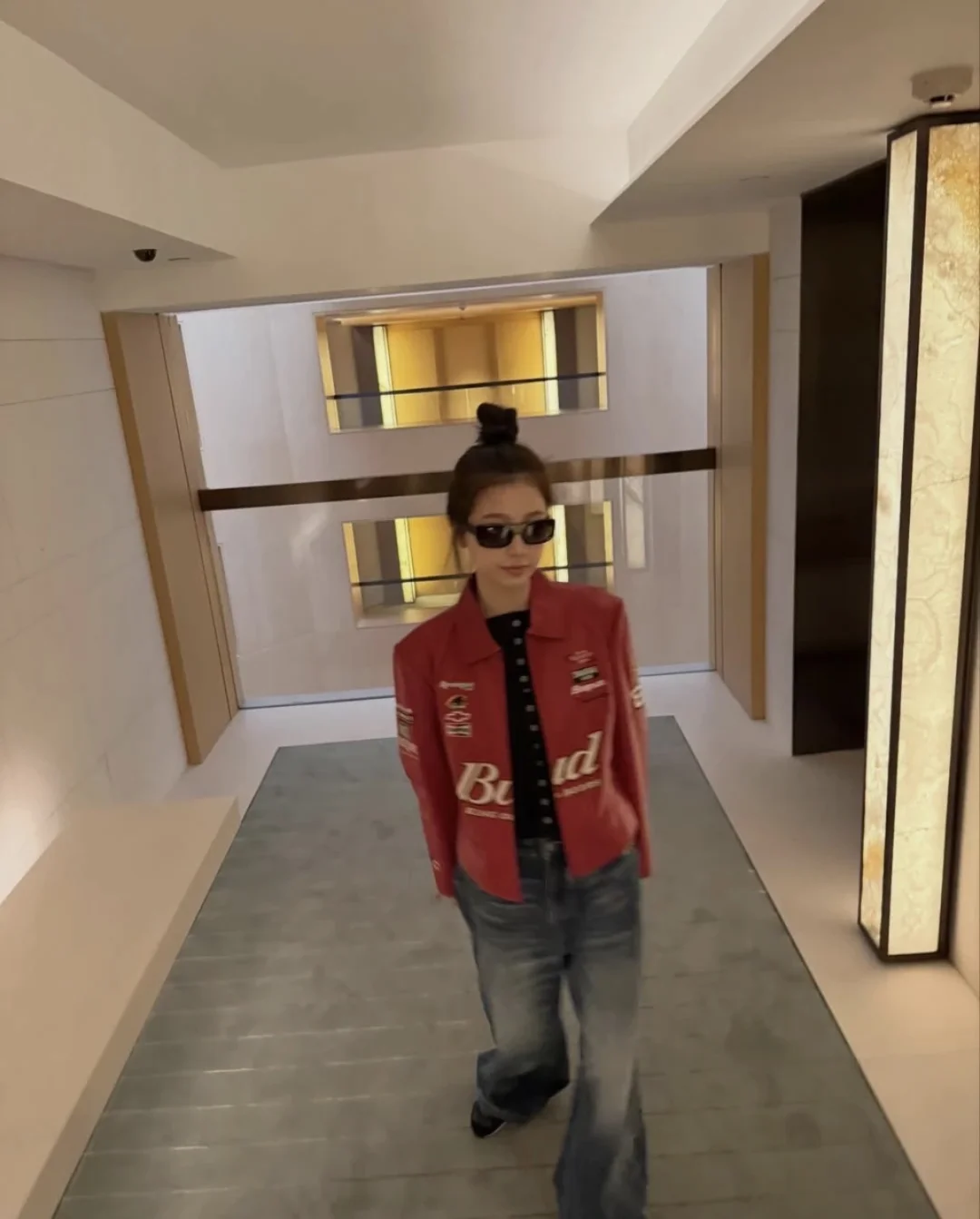 被虞书欣这套穿搭狠狠拿捏! 红色赛车夹克自带复古美式腔调,搭配阔腿牛仔裤慵懒又随性,高丸子头+墨镜更是气场拉满,甜酷辣妹的穿搭模板直接抄作业