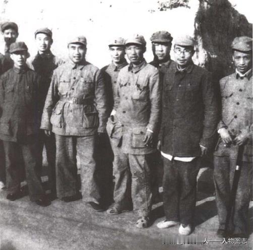 一九四八年五月二十日,朱德总司令在观城县(现属聊城地区莘县)十王庙村与冀鲁豫区党委,军分区领导人合影。左起:陈越平,甘渭汉,张承先,朱德,潘复生,申云浦,刘致远,陆凤翔,谢良。