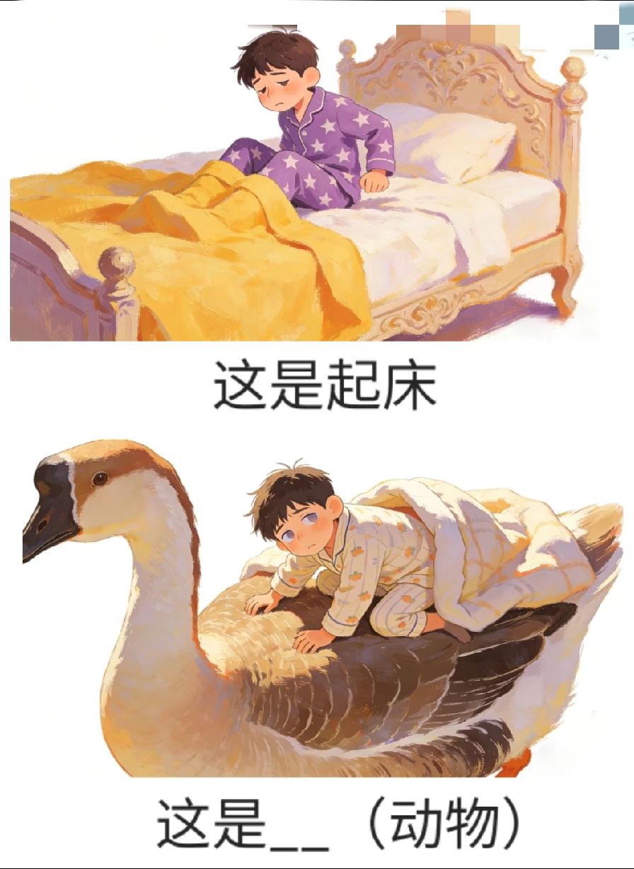 一张图测你玩梗能力!男孩趴鹅身上猜动物,评论区晒出你的答案
