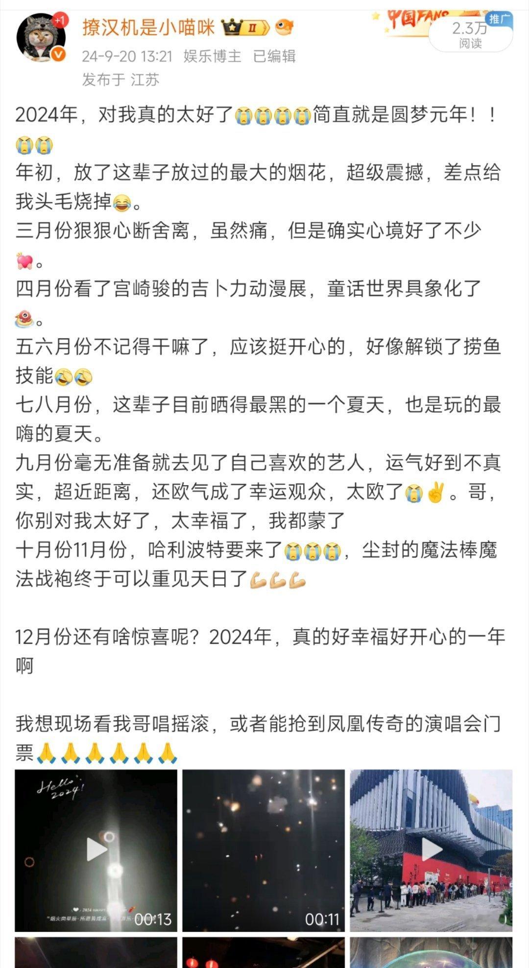2025,我的超级无敌快乐之年!愿望?不止实现,是给我超级加倍了!哈哈,我简直是大天朝许愿池里最灵的那只大王八!感谢所有路过我赛博生命的朋友:夸我的、骂我的、陪我疯的、拽我一把的……都算。你们是镜子,是路灯,是硌我脚的石头,终于让我正视自己,找回自己。春 · 战春风吹,战鼓擂,我像只一点就炸的猫,毛全竖着。见不公就吼,不爽就挠。但居然有人,在我张牙舞爪时,还愿意听我话里的道理。这让我第一次服软:人可以骨头硬,但刺不必总对外。好吧,我认,我那时是有点太凶了。夏 · 浪一张机票,把我丢进热浪和海声里。在音乐节的人潮中蹦成傻子,汗和沙糊一身,却痛快得想哭。那一刻我懂了:快乐不在kpi里,而在风扑脸、心跳撞鼓点、和陌生人碰杯后一饮而尽的瞬间。追星不光是爱别人,热爱也是自己的生命力。秋 · 遇计划好的惊喜黄了,却被随机彩蛋砸中。我为你翻山越岭,也为自己看风景。人生嘛,事与愿违是常态,但不期而遇的圆满才是彩蛋。最美的风景,永远在计划之外的隔空挥挥手里。我喜欢偶然性,人生嘛,就是不完美才有意思呀。冬 · 见我曾拼命想要个“被看见”的勋章,求不得就躲起来偷摸破大防!但我悟性高啊,悟透了悲风白杨的“不破不立”,后来真找回了创作者初心。就在我真正看开、不再伸手要糖时,命运反手塞了我一颗🍬。惊喜像风,来了又走。而我终于学会在风里站稳。原来真正的Inner Peace,不是无悲无喜,而是悲喜穿身而过,骨架未动毫厘。快好起来吧,早日脱拐! 没你在,我像可乐没气、吃饭没碗,线下都没了主心骨!快好起来,有你在,才是我的主场!新的一年,新的愿望,我许三个行吗?1. 愿肖顺尧可以得到一个演技类奖,我觉得应该给他一个2. 愿世界和平,让老百姓活的容易点吧3. 愿彩虹尽快康复,阳光、彩虹、小白马,我们尽早还能一起出去“滴滴答滴滴答”