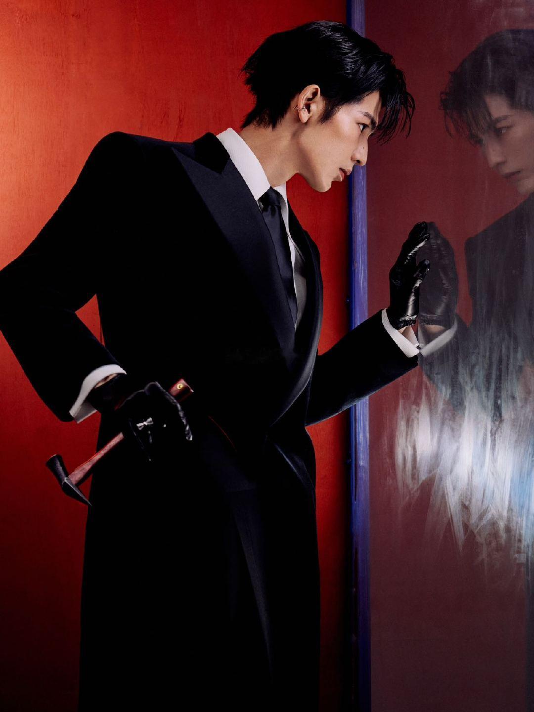 张凌赫这套造型必有高人指点造型师是懂张凌赫的!红黑撞色完美凸显他的冷峻气质,皮手套与权杖增添神秘威严。湿发造型搭配银色耳夹,禁欲中透着致命吸引力——这声daddy我先叫为敬!