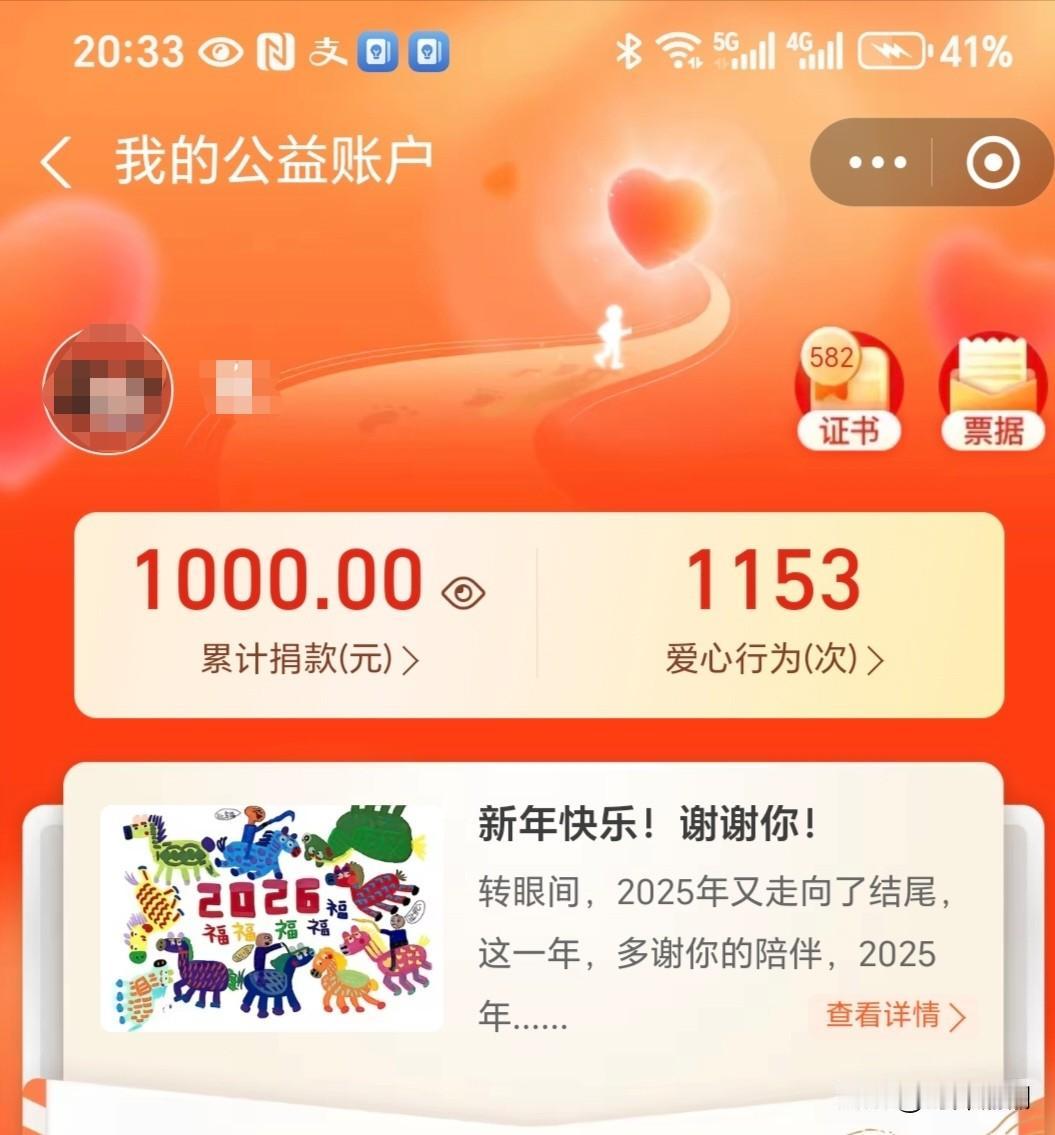 2025年即将过去,2026年马上到来。过去的一年,是自己慢慢转变,慢慢进步的一年。这一年,通过学习感悟,心境发生了很大的变化,视野也开阔了许多。从最初的一点点捐赠,到后来的每天必做功课之一。帮助别人,也是在帮助自己。为自己能给别人带去一点点小光芒而感到高兴!希望世界越来越美好,大家都安宁!