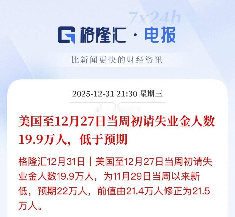 一切良好,低于预期,美国上周劳动力市场数据是申请领救济的人又少了,预期22万人,领的不到20万人就看市场信与不信了,短线估计依然还是维持1月美联储不降息的节奏吧,凑合着看吧。