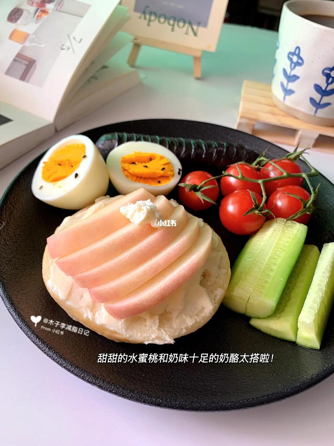 2022.7.22|减脂415天 今日饮食: ☀️早餐:水蜜桃奶酪贝果|黑咖啡|黄瓜🥒|千禧果|鸡蛋|墨鱼肠 🥣午餐:轻食|水果 💧喝水2000ml➕ 🏃♀️运动:不动 ————————————————————— 今天想不出文案,就想你~