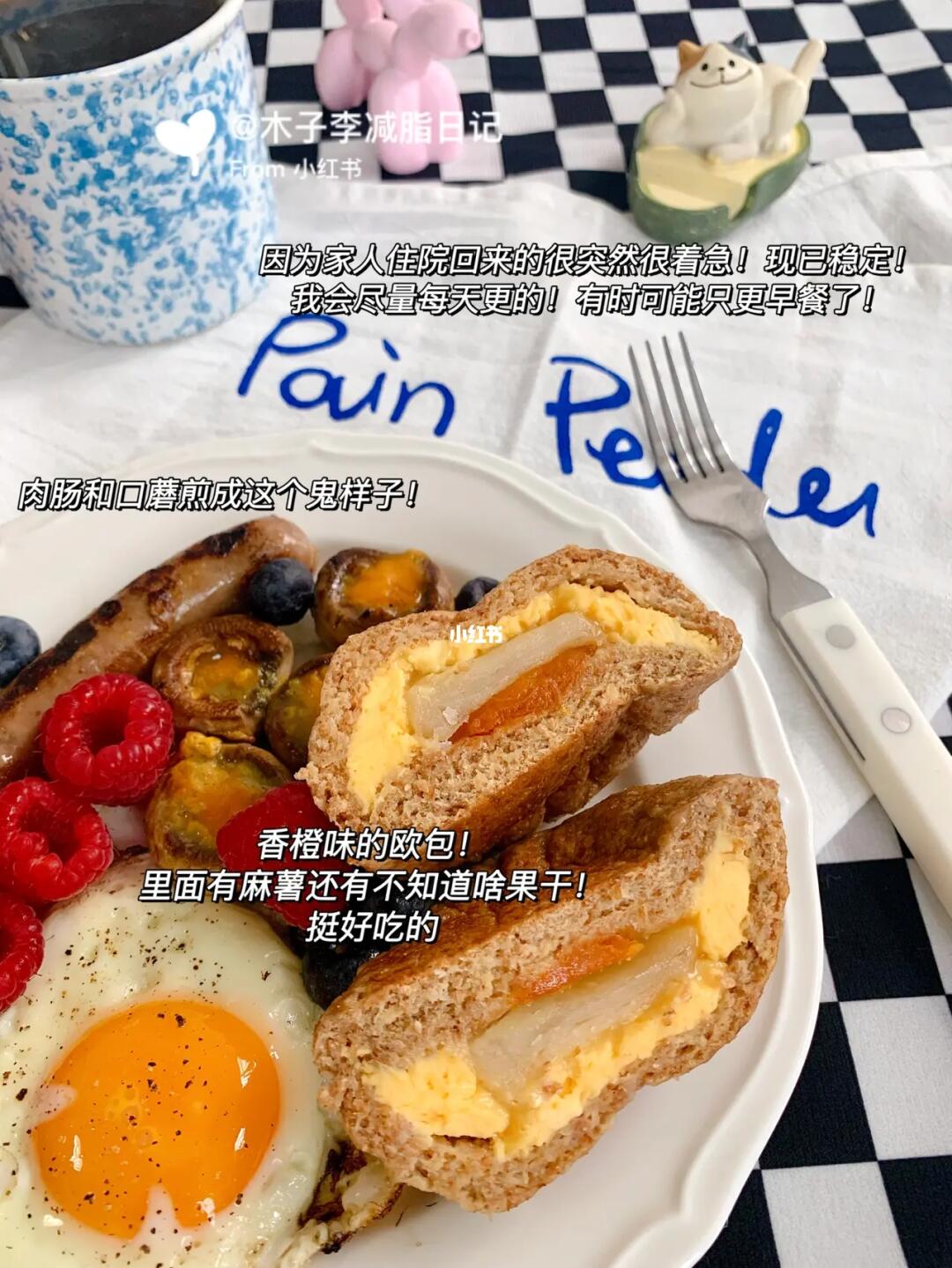 🍳早餐:煎蛋|香橙欧包|肉肠|树莓|蓝莓|口蘑|黑咖啡|