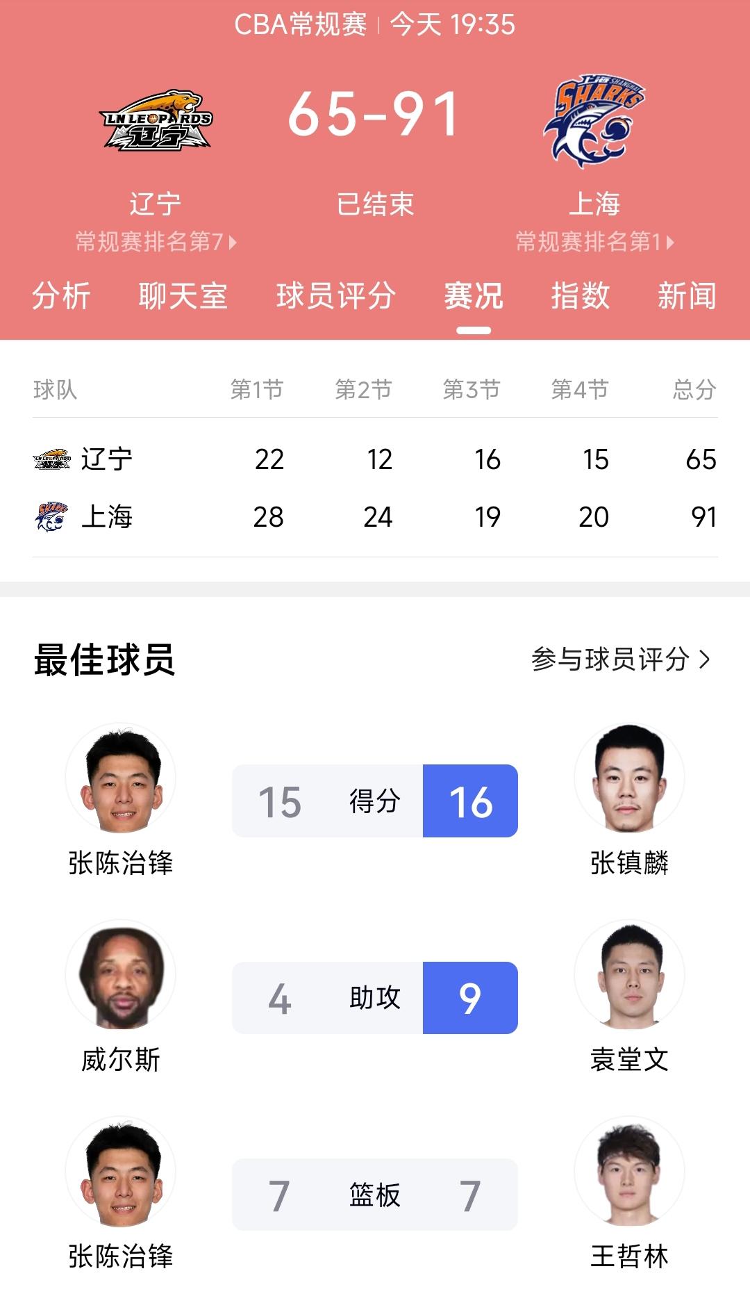 记得当年郭士强带领辽宁男篮遭遇了3连败之后就下课了。今晚辽宁男篮主场输给上海男篮遭遇4连败,可是杨鸣的教练位置依然很稳固。 这样看来今年夏天将张镇麟、弗格送走之后辽宁男篮确实没有争冠的心气,以至于4连败之后没有任何失落感,看到这里我突然间觉得此时此刻的辽宁男篮似乎回到了2009年到2013年之间进季后赛都很费劲的阶段。