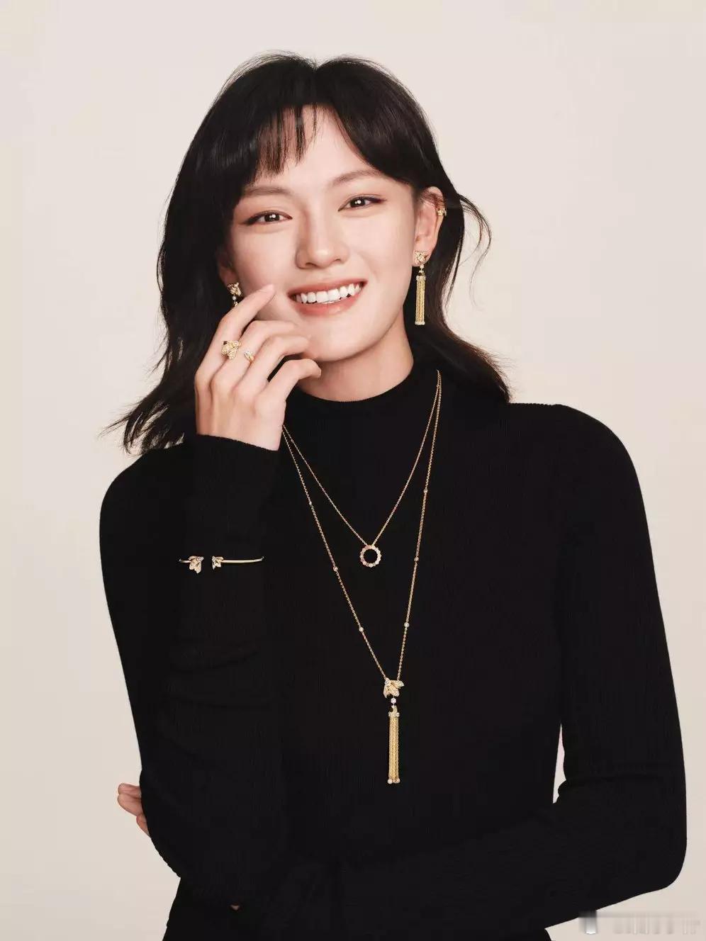 分享娱乐文淇穿高领毛衣笑容灿烂 戴金色珠宝优雅精致