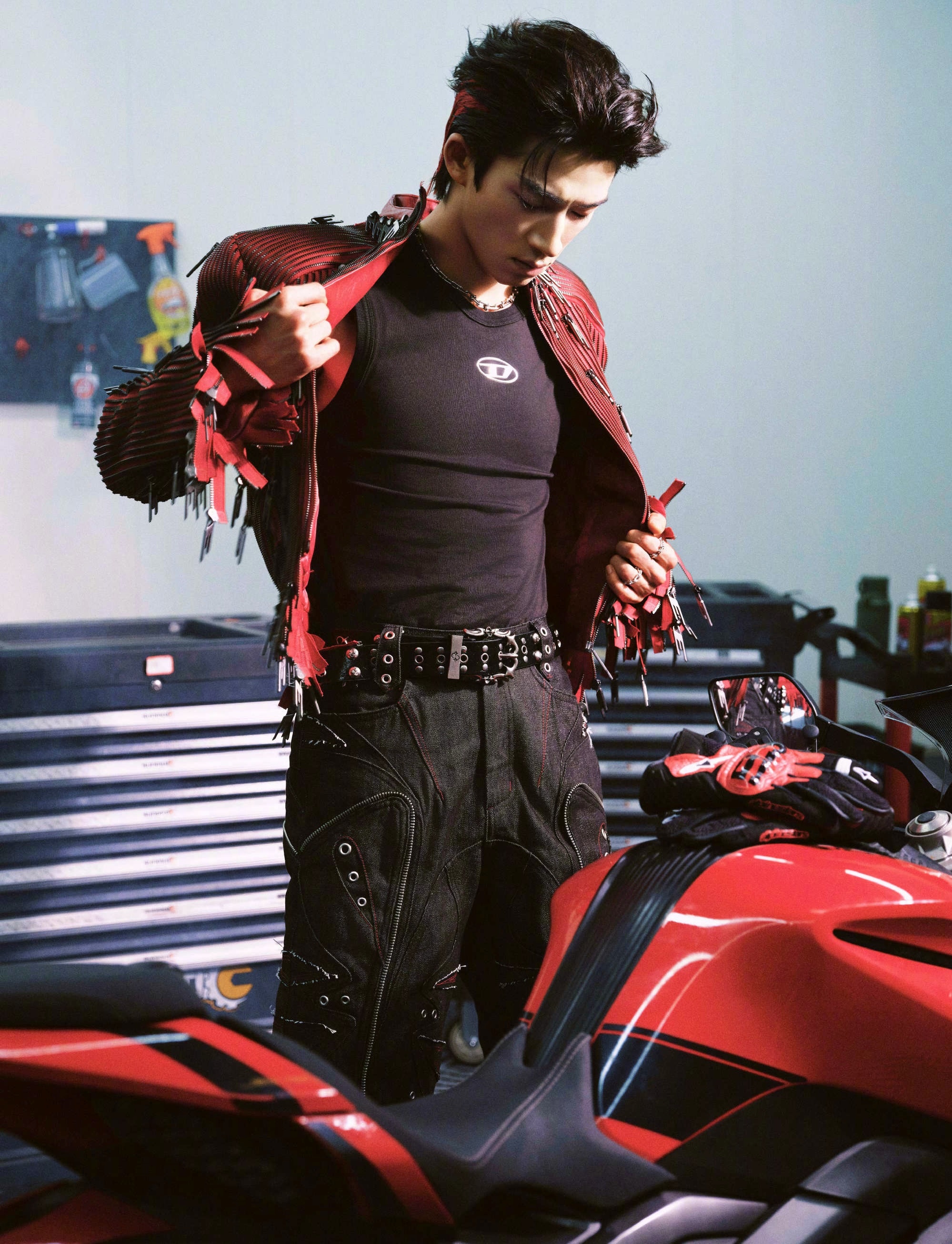 王星越 今晚 造型,变身硬朗酷帅的机车型男,夹克配背心的街头风搭配,佩戴Tiffany HardWear系列,小孩哥扮酷耍帅也是越发得心应手。