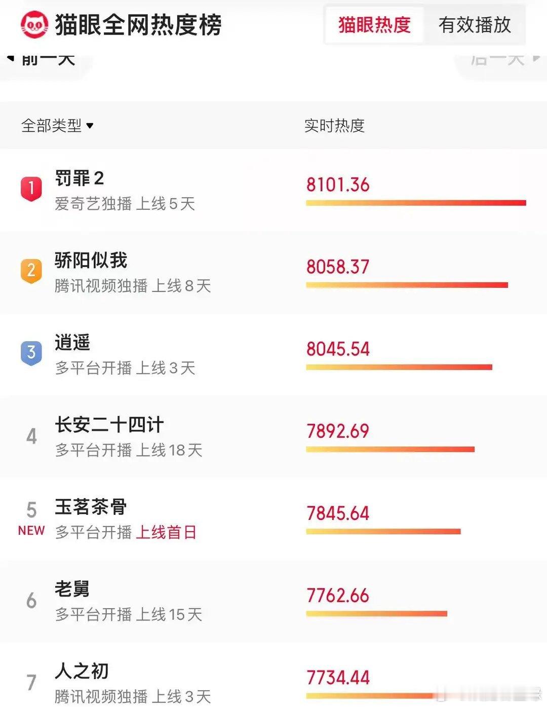 【近期播放▶️电视剧盘点】7、《人之初》人对自己身世和血缘的追逐是与生俱来的,高风更是在追逐自己的本初,孤儿高风执着于找寻亲生父母,富家女吴飞飞斡旋于企业的种种危机中,两人本有着毫不相关的生命轨迹,某日,一起撞车事件暴露出一具埋藏多年的尸骨,越是阻止高风找寻真相,越会扩大他内心的孤岛,探索寻亲的脚步越坚定,其实越看越理解高风的选择。6、《老舅》虽然有些剧情不是很合逻辑,但大体上看懂了,舅妈没死之前是喜剧…舅妈死之后是悲剧…喜剧好看,悲剧套路无聊,老舅的一生一直在折腾,但好像又差了那么一点运气,还是东北人的往事,很接地气儿,普通人的传奇也就到这份上了,折腾半生,归来仍是少年。5、《玉茗茶骨》主演: 侯明昊 / 古力娜扎 / 陈若轩这剧看得很带感呀,白切黑黑切白我都搞不清了,男女主颜值可以追起来侯明昊之前看过他在淮水竹亭里演的百目妖君,超帅的。在这里侯明昊彻底跳出舒适圈,把隐忍,温柔,算计揉进骨子里。这次娜扎选对角色了,一刀解决山匪帅爆了,她很适合这类运筹帷幄清冷掌家女强人角色,演技真的进步好多。4、《长安24计》全员角色都立得住,新帝的威严、权臣的深沉都演出来了,谢淮安一点点摧毁萧文敬摧毁他的精神,让他心甘情愿当狗,这种诛心的复仇方式,真的比直接杀人更爽。还喜欢鲜活的女性角色群像,白莞聪明果敢,心姨重情重义,她们在乱世中都有自己的选择和力量,这部剧虽有拖沓之处,但整体权谋戏还是挺不错的,既有复仇爽感,又有家国大义。3、《逍遥》宁安是清冷决绝的人族公主,今生肖瑶是半妖少女,真没想到谭松韵能够轻松驾驭这两个角色,并能够在角色间流畅切换,太意外了,剧情给力是这部剧最大的看点,没有了往常的仙侠剧的固有套路,没有直白的甜宠,有的是对爱的质疑与深陷,红烨破封而出的那一刻,就注定了这种矛盾与深情会伴随电视剧的始终,太精彩了剧情让人深陷其中,很耐看2、《骄阳似我》确实是没想到骄阳似我这么好看,多一点这种三观正的恋爱剧吧,很喜欢这种有内核、有细节的慢慢喜欢,满满的心动。这个林屿森x聂曦光的恋爱观又正,又会直球表达,特别是曦光成长线给人的代入感很强,从卑微暗恋到重新自信发光,希望每个女孩都不要在爱情里卑微、迷失自我!1、《罚罪2》节奏嘎嘎紧凑,片头不可跳过,短短一两分钟交代的剧情都非常关键,能用一句话交代清楚的事绝不会用第二句,剧情推进速度贼快,现在追罚罪2已经养成了回看的习惯,很多细节第一次看没注意,二刷才发现全是伏笔,比如叶天佑和王老的对话、罗博看马金的眼神,越品越有味道,这剧适合二刷细节党。