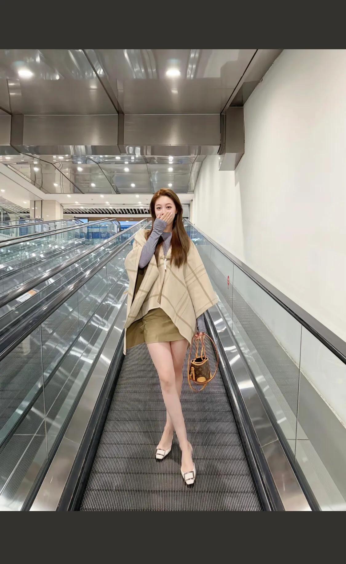 机场穿搭指南:米色披肩+卡其短裤,优雅又舒适!