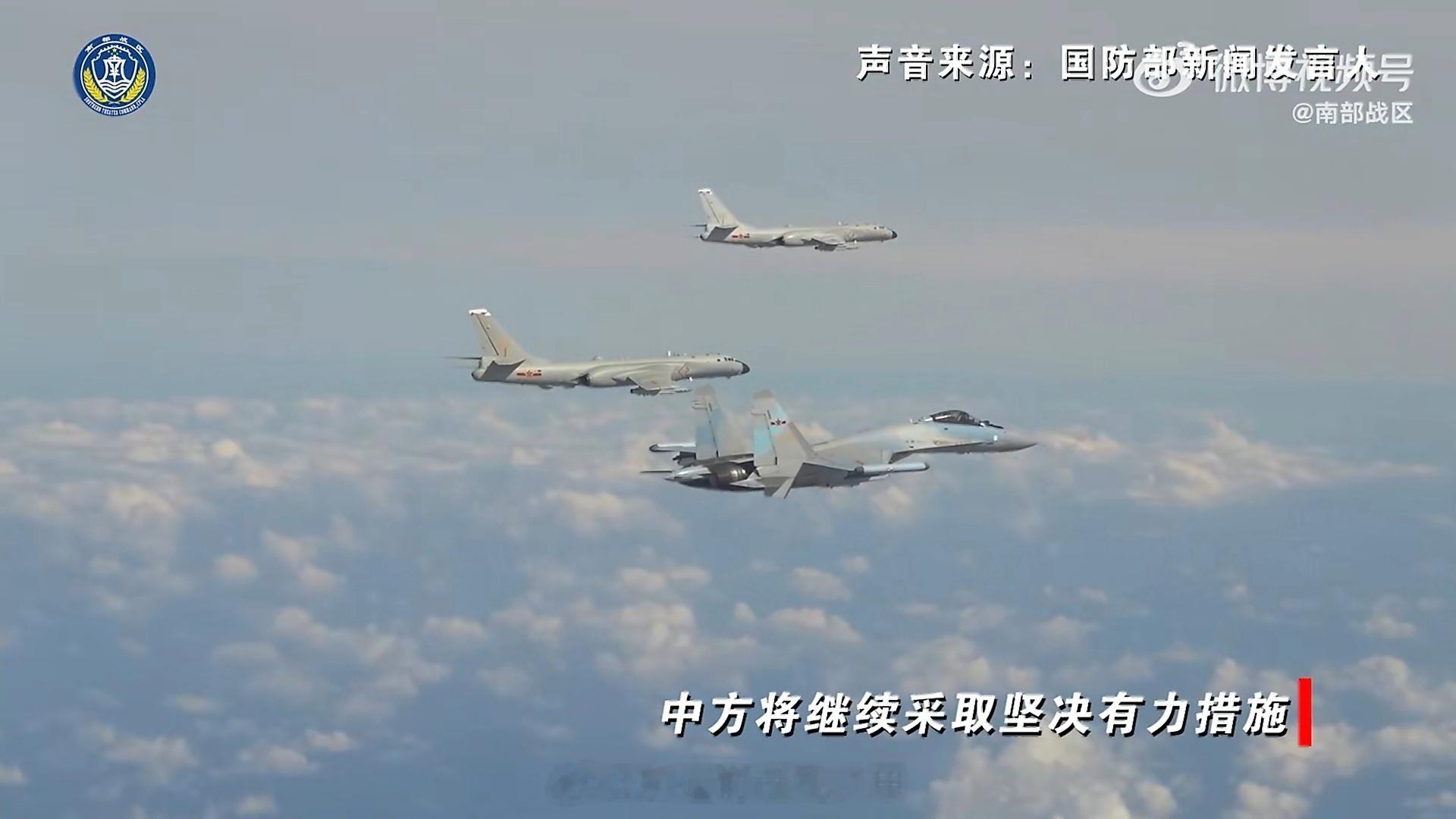 中国人民解放军空军苏-35战机正在穿越黄岩岛领空。中国人民解放军南部战区位中国黄岩岛领海领空及周边区域组织战备警巡烽火问鼎计划