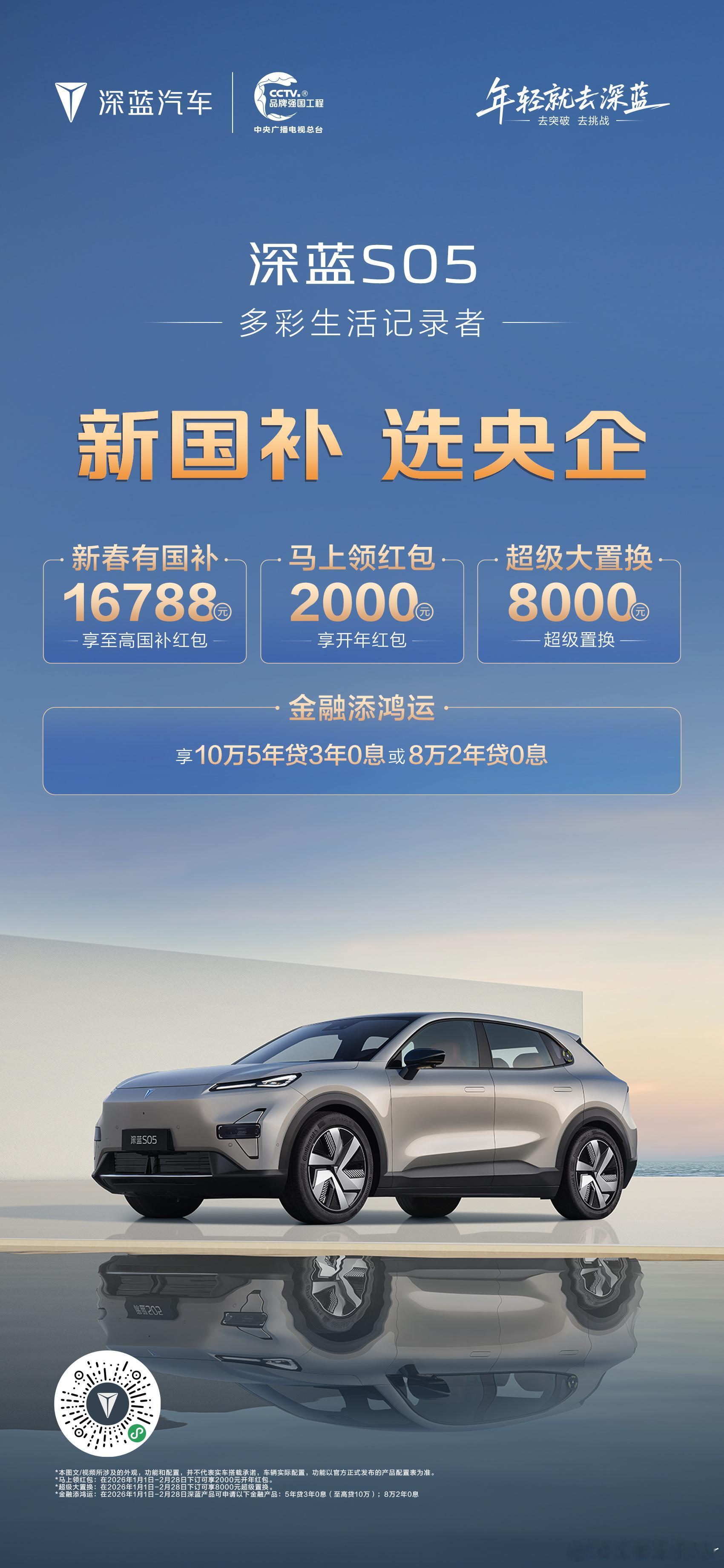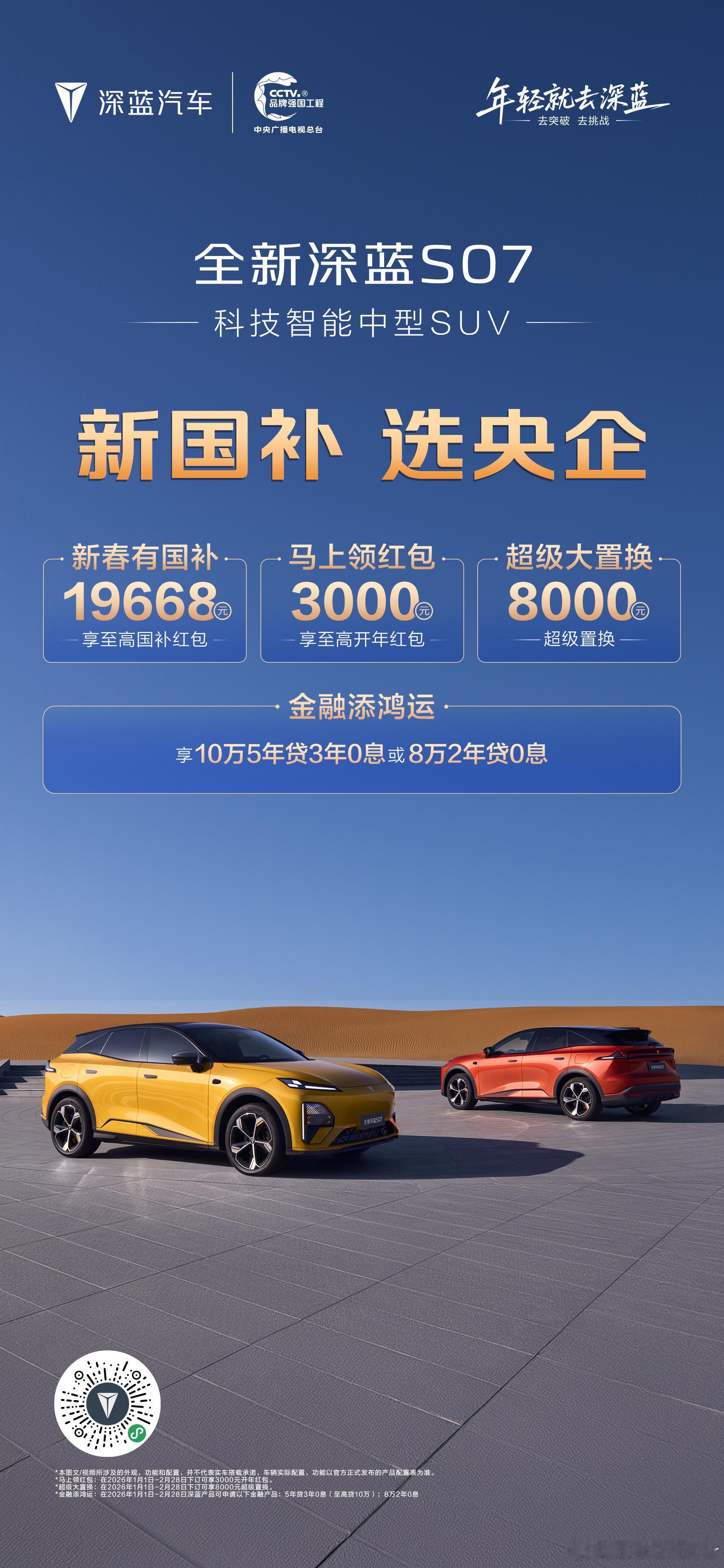 新央企,响应新国补,诚意献礼!领国补:至高20000元,领红包:10000元享置换:至高8000元,分期付:至高5年0息实力宠粉,轻松开启新年!新国补选央企 深蓝汽车
