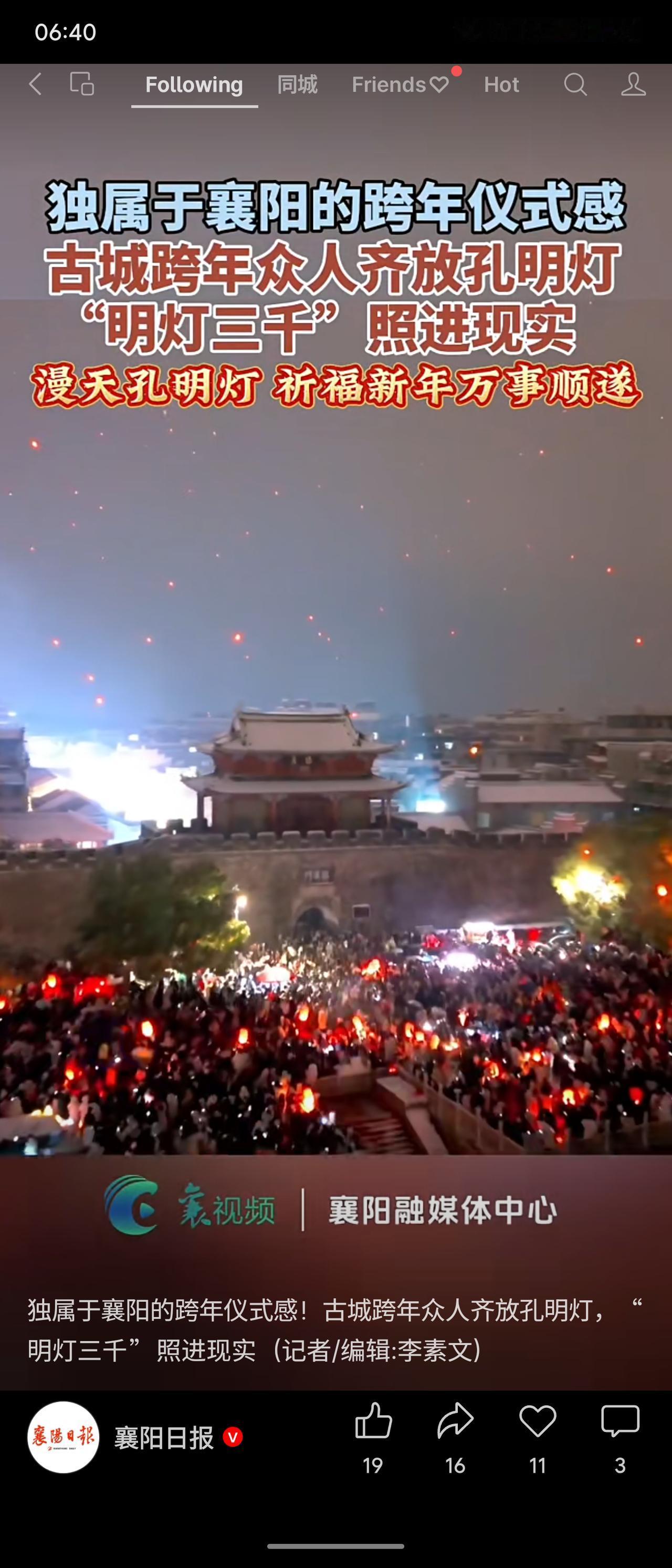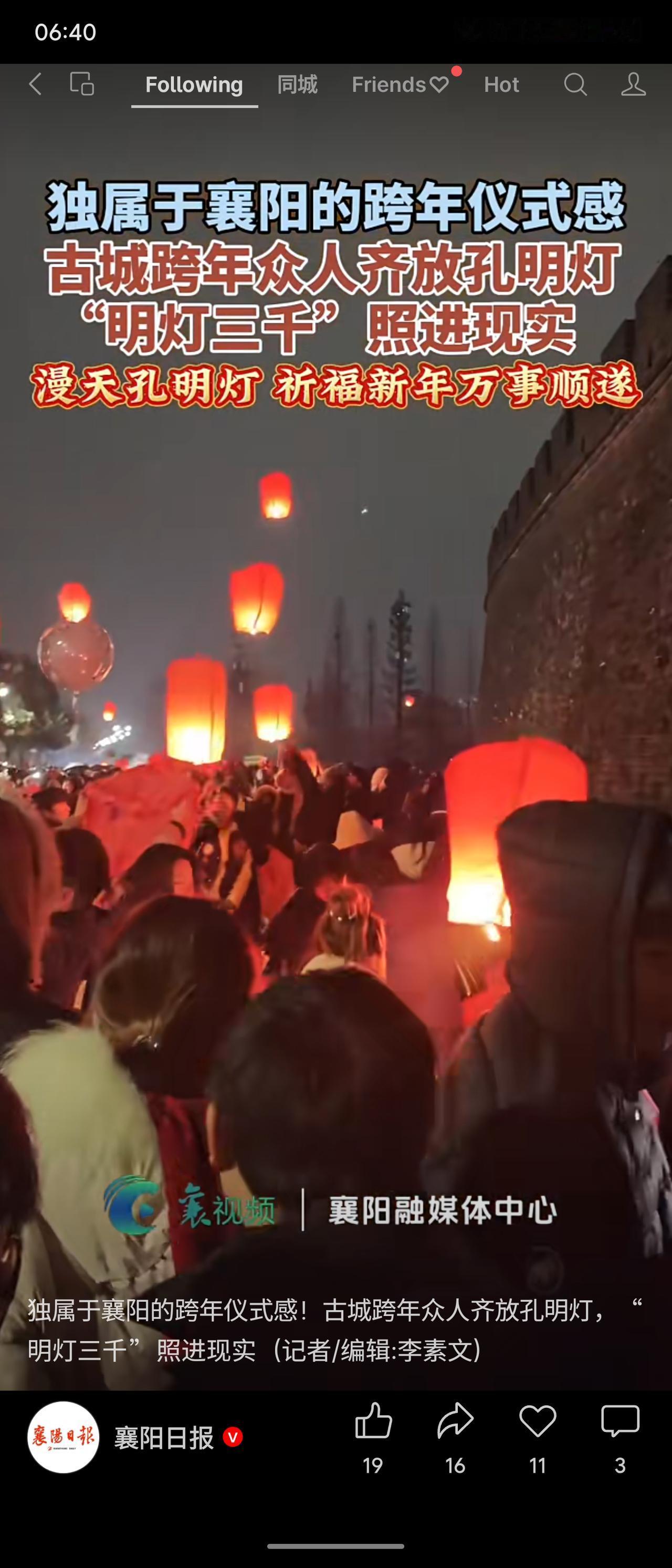 湖北襄阳古城以独特方式跨年,众人齐放孔明灯。“明灯三千”的壮美景象照进现实,漫天灯火承载着人们对新年万事顺遂的祈愿。