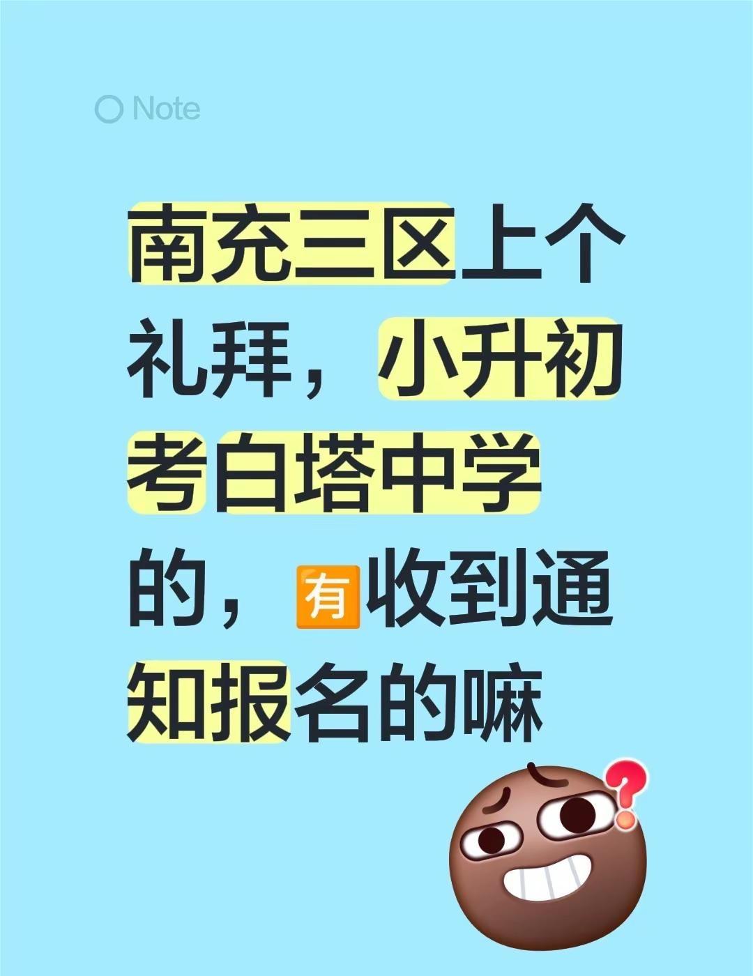 南充三区上个礼拜,小升初考白塔中学的,🈶收到通知报名的嘛