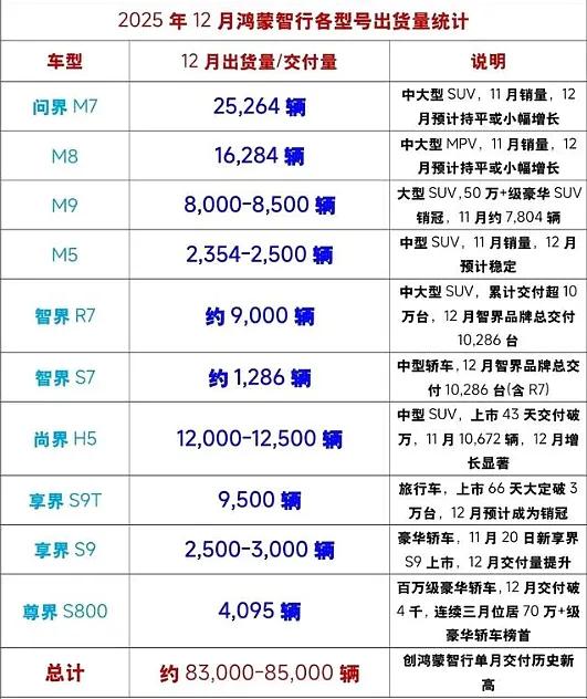 情况就是这么个情况,20万以下迪子优势巨大,20万以上鸿蒙优势巨大,有人会说鸿蒙智行是五个界的销量总和,这么统计对其他品牌不公平,其实,很多人没有意识到,这是一种全新的打法,高科技企业赋能传统造车产业,在智能驾驶和智能座舱方面进行降维打击,重塑汽车产业格局,不管你喜欢不喜欢,这已经是事实了。 2026年鸿蒙智行总销量破百万也不是不可能,大家觉得呢?