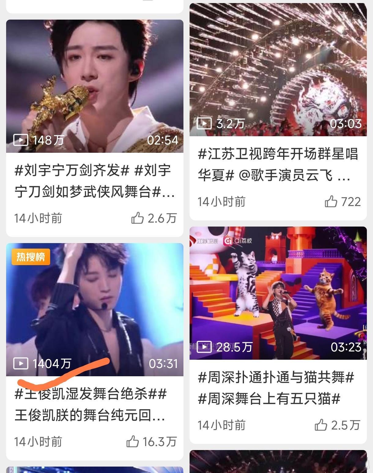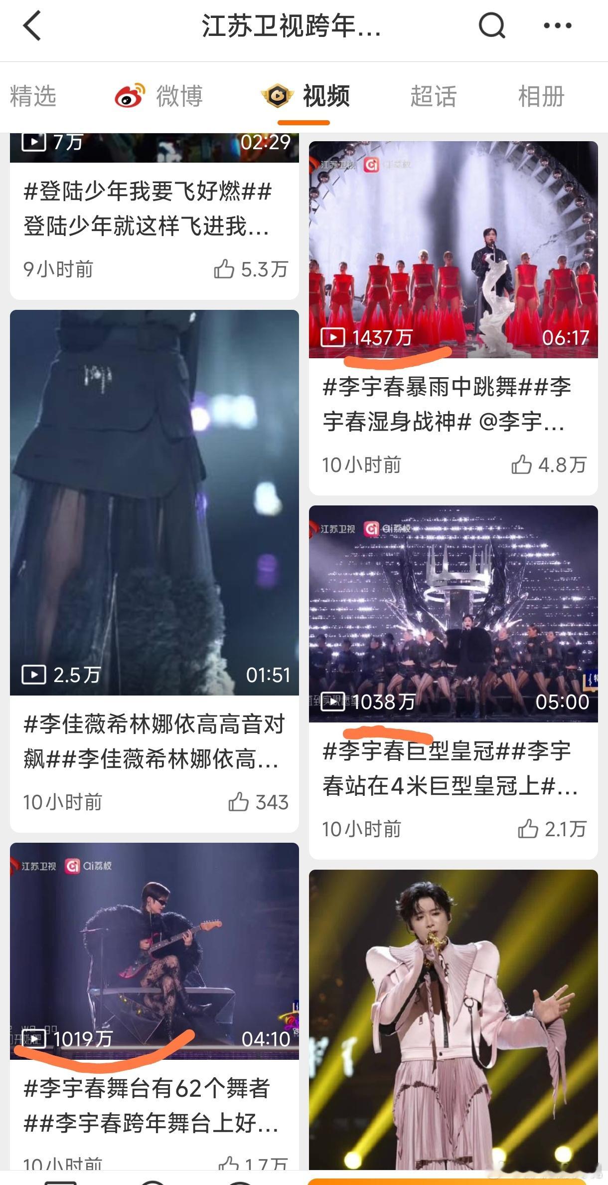 跨年演唱会播放量破千万舞台,李宇春一个人占了三个,不愧是每年晚会都压轴的嘉宾任嘉伦《See Ya》王俊凯《Beautiful》邓为、王玉雯《想某人》李宇春《冬泳》《皇后与梦想》《无价之姐》王俊凯工作室真的还有图 一个舞台两条视频破千万也很牛