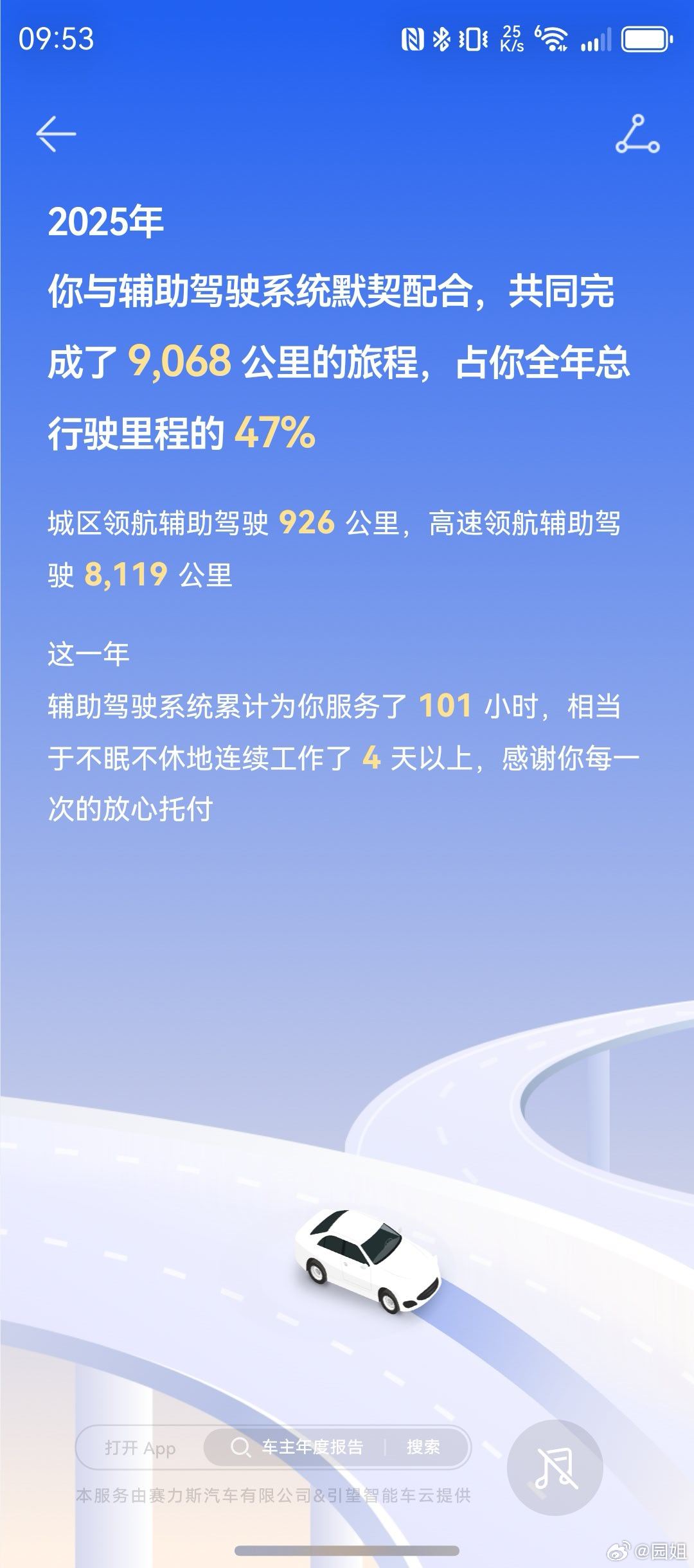 我的问界M9用车报告也出来了,全年行驶19280㎞,辅助驾驶里程8119㎞,其实