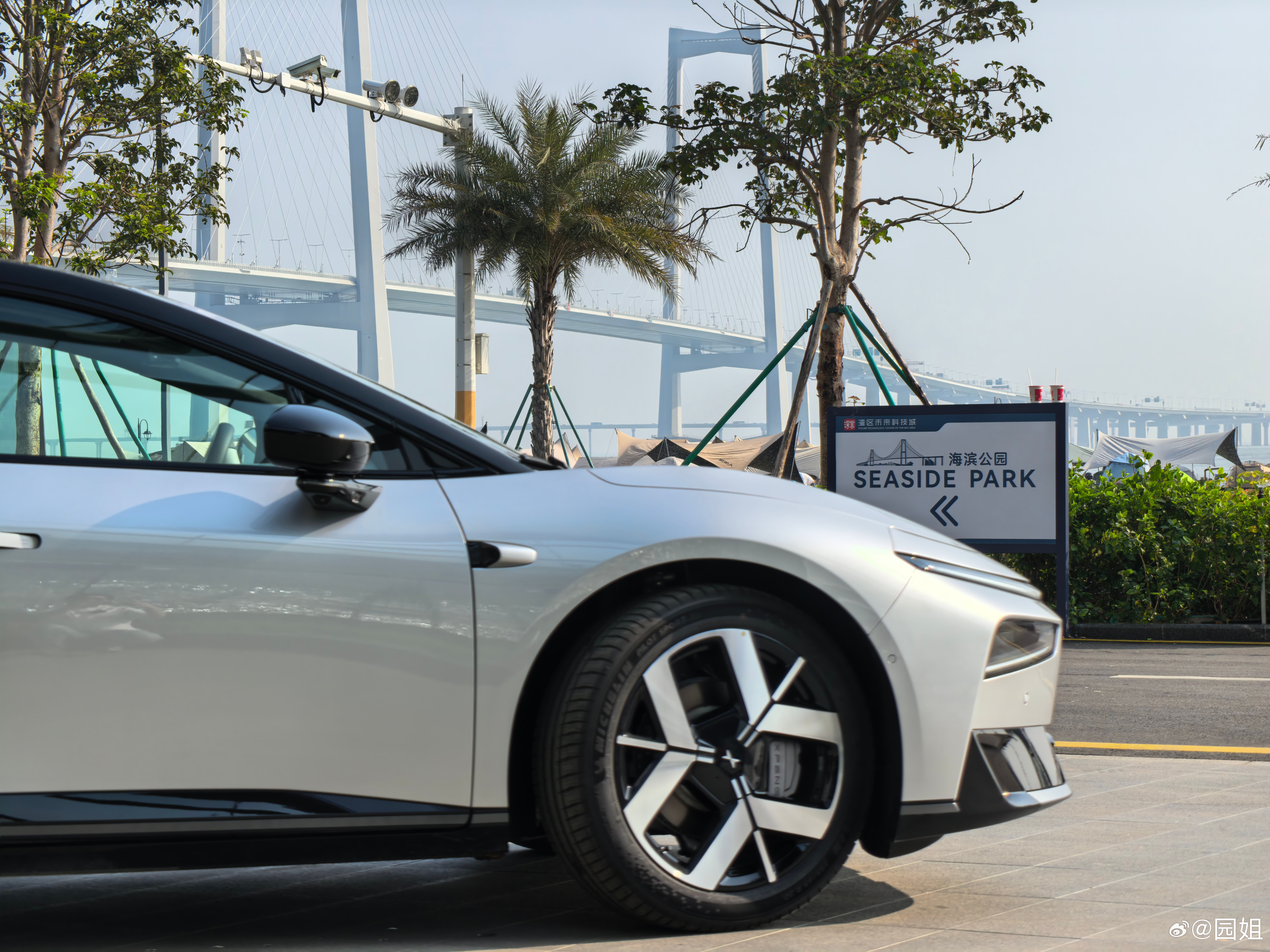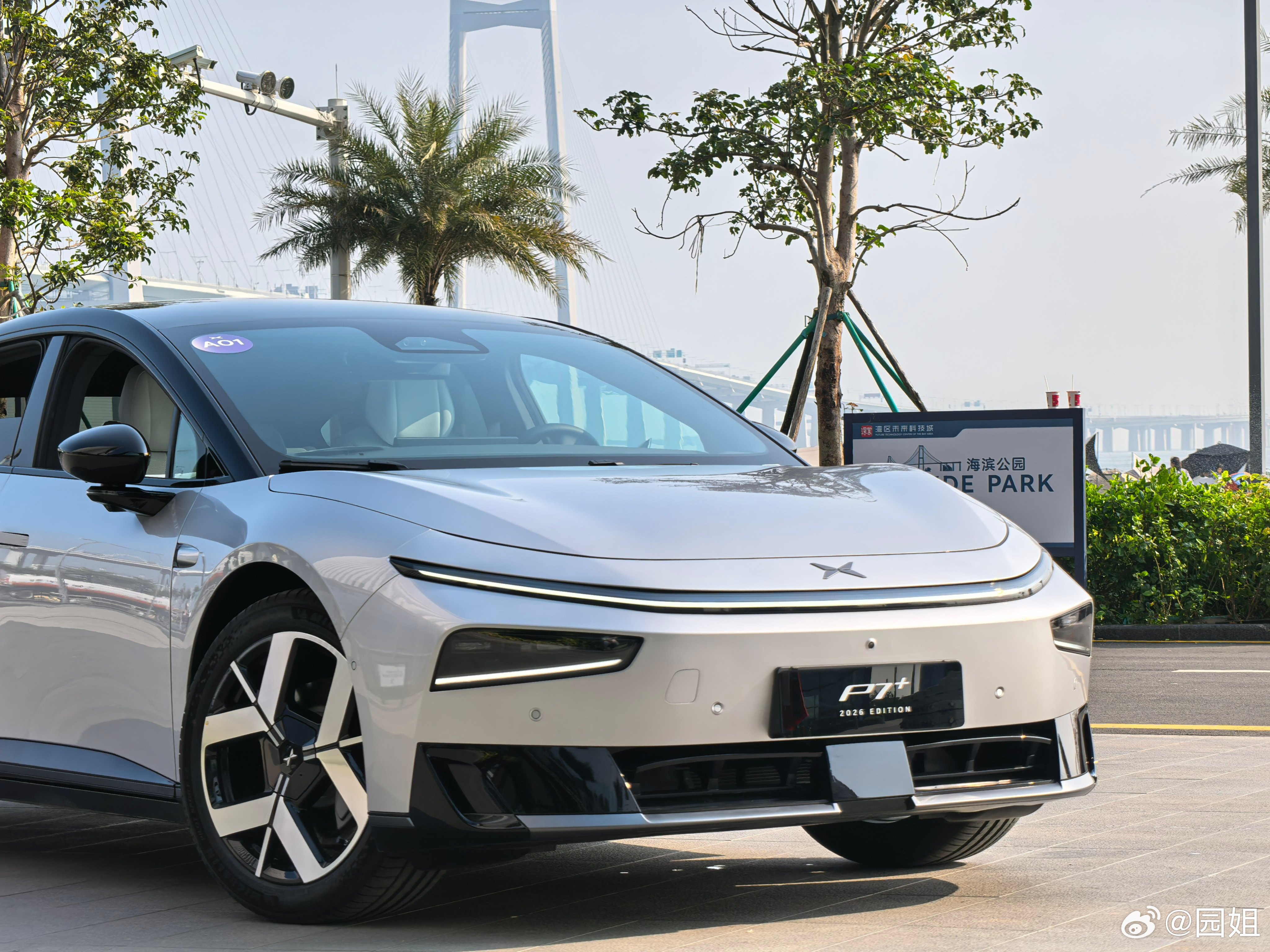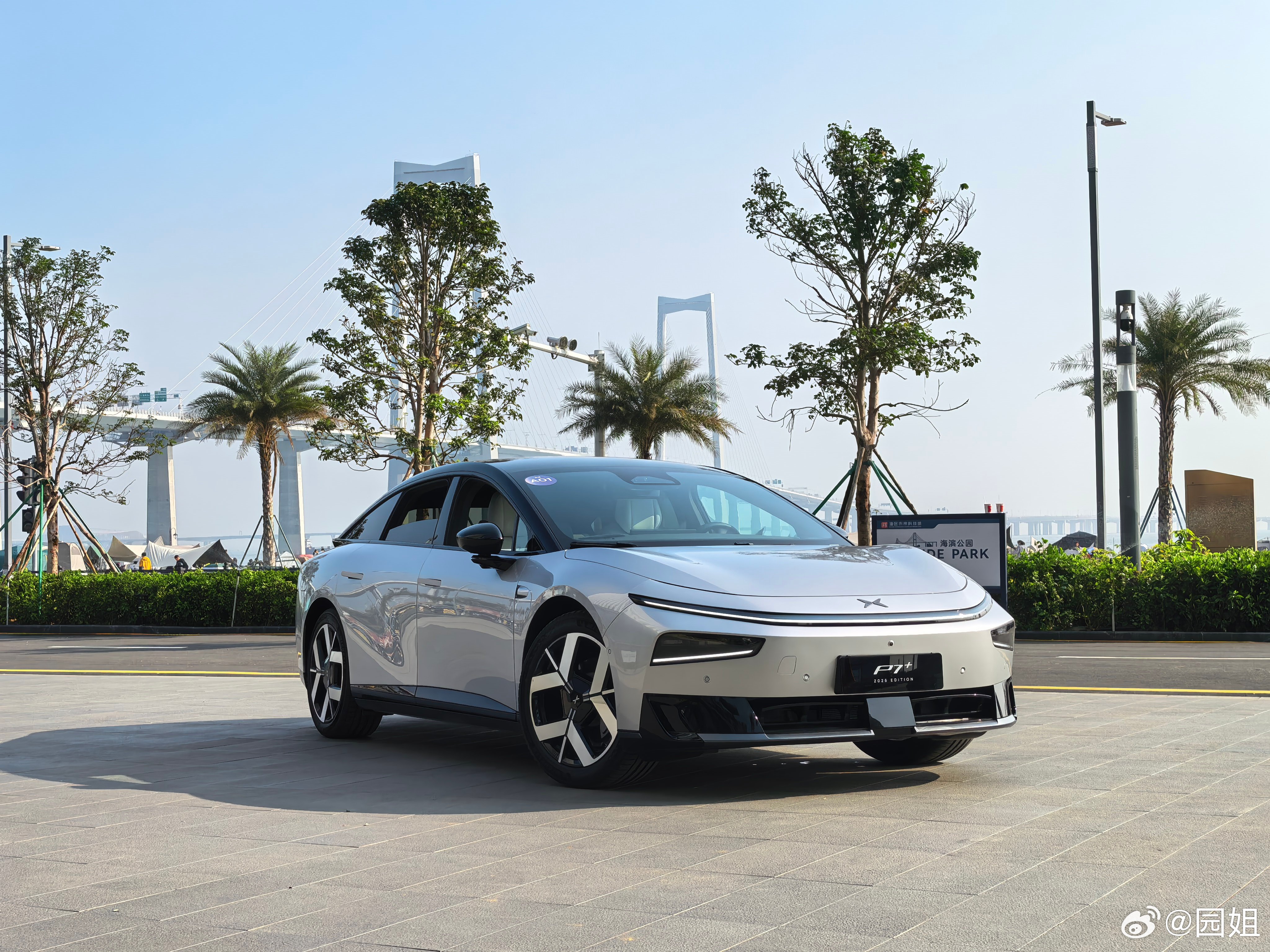 小鹏P7+,这个外观设计还是很有个性的,溜背式轿跑设计,视觉上修长且动感,这个轮毂也很漂亮,属于看了就想买的那种