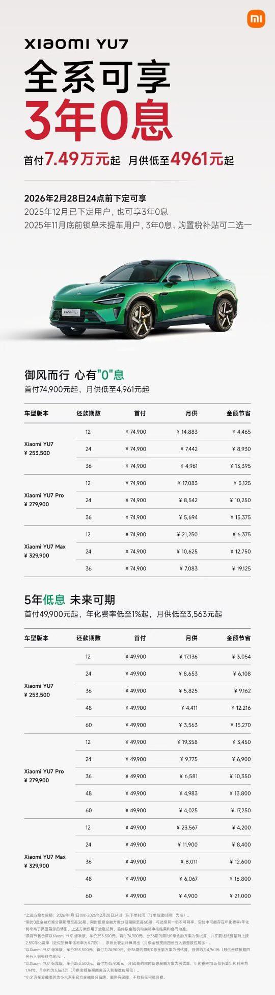 小米yu7全系享3年0息/5年低息。老客户转介绍可获8000积分。小米yu7 max现车赠送18000主副驾零重力座椅…… 小米汽车开年就放大招送出这么多的福利,到底是销量低迷下的赤膊上阵?还是为了2026年销量再上新的台阶而纡尊降贵? 可不管小米汽车出于何种动机,2026年新能源汽车市场,必将是刺刀见红、不死不休的那番场景!!!
