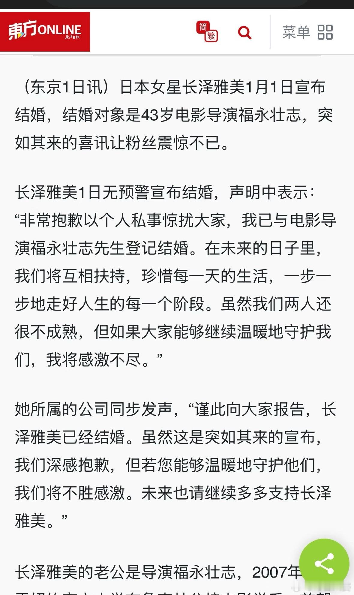 长泽雅美结婚啊啊啊我麻酱结婚了!新年第一天的惊喜(暴击)!新郎是导演福永壮志,事
